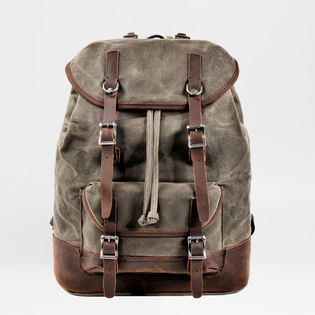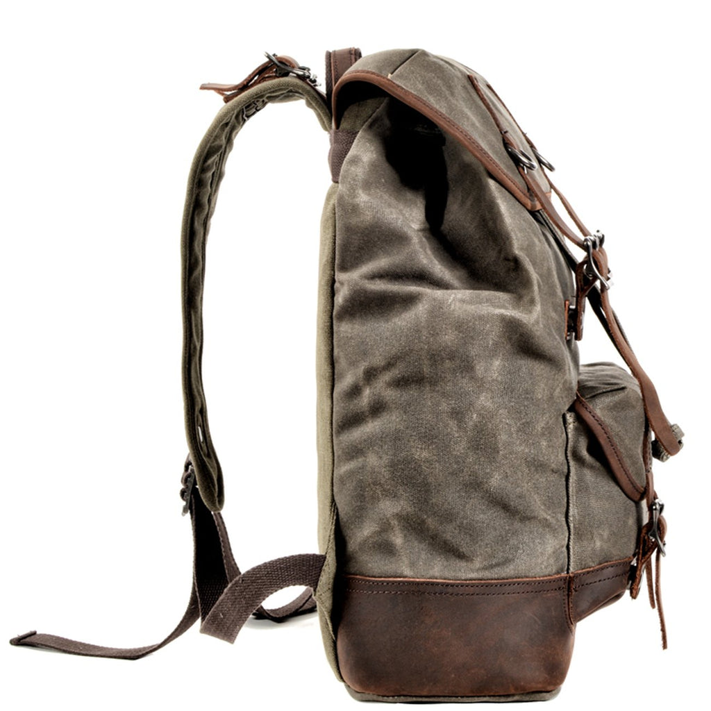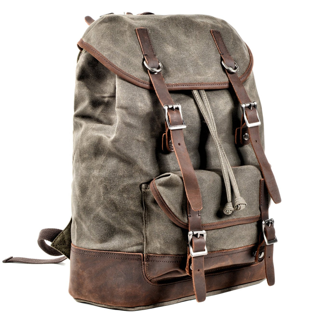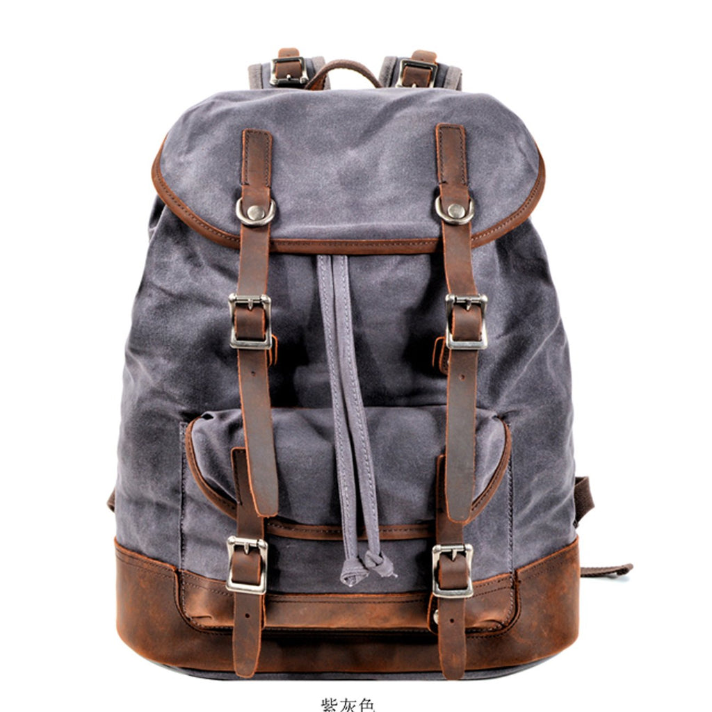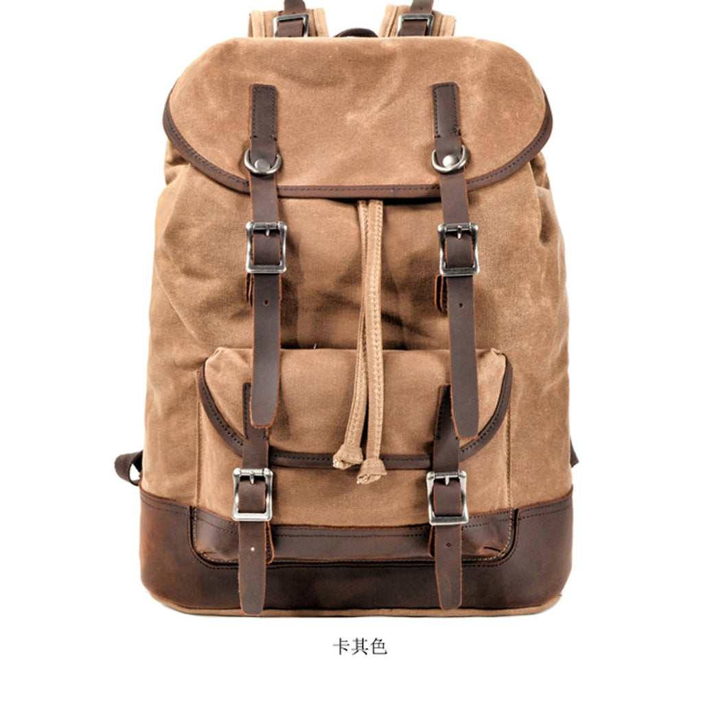 Style: Cool Canvas Leather Mens Waterproof Classic Outdoor Travel Backpack Computer Backpack for Men