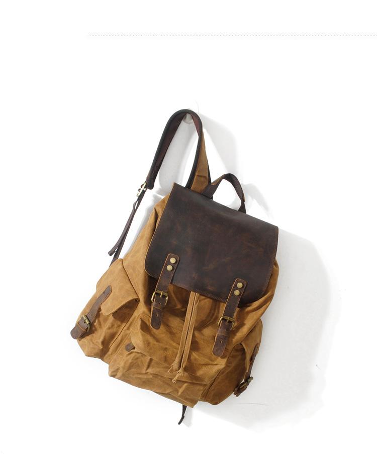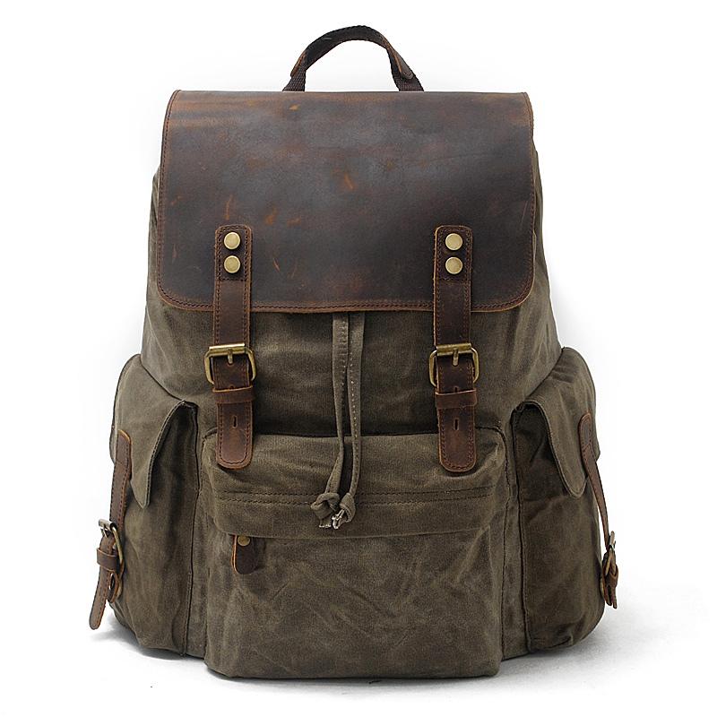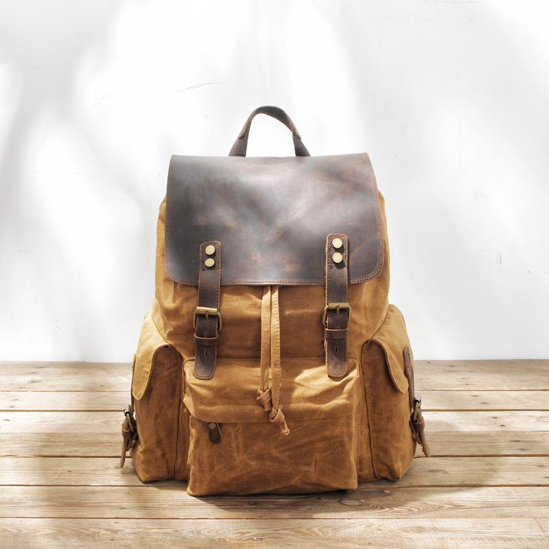 Style: Cool Canvas Leather Mens Waterproof Computer Backpack Large Hiking Backpack Travel Backpack for Men