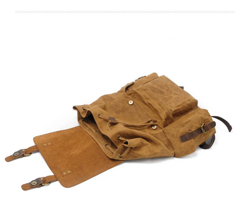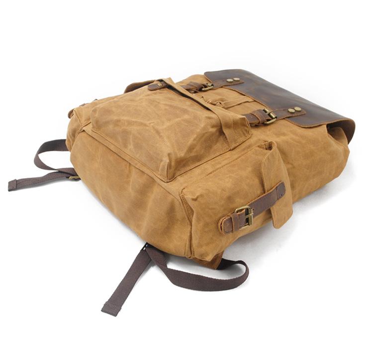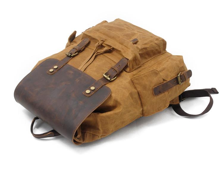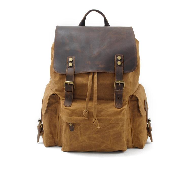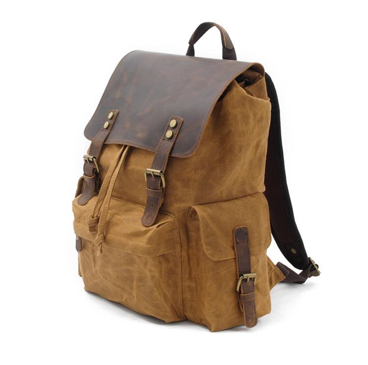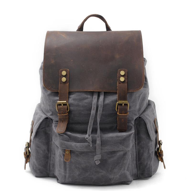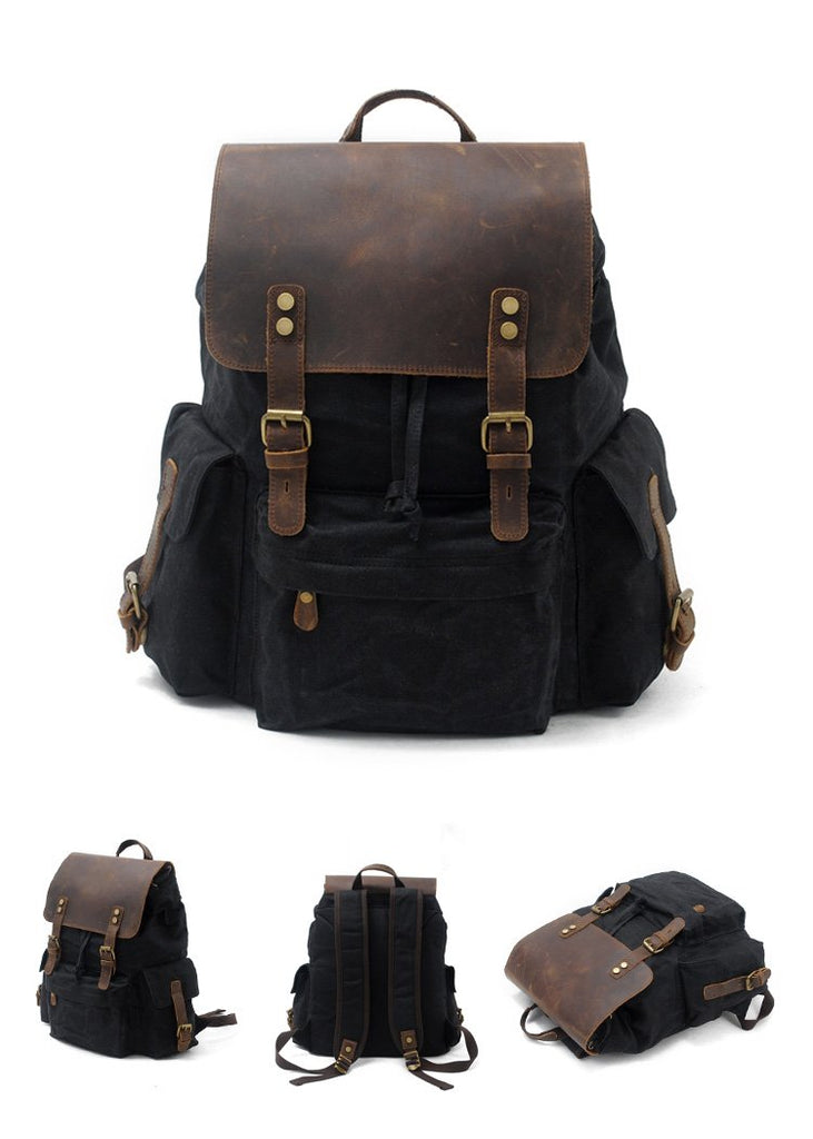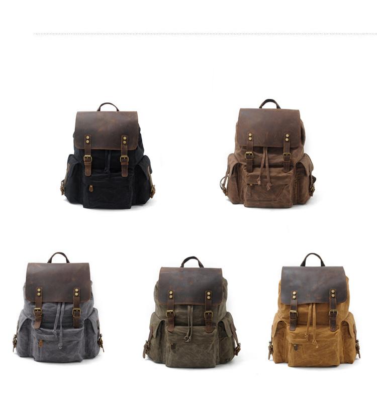 Design: Cool Canvas Leather Mens Waterproof Computer Backpack Large Hiking Backpack Travel Backpack for Men