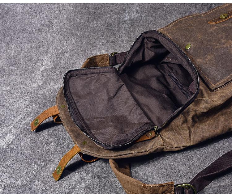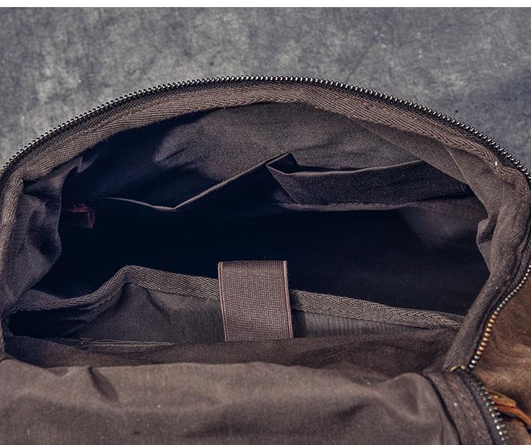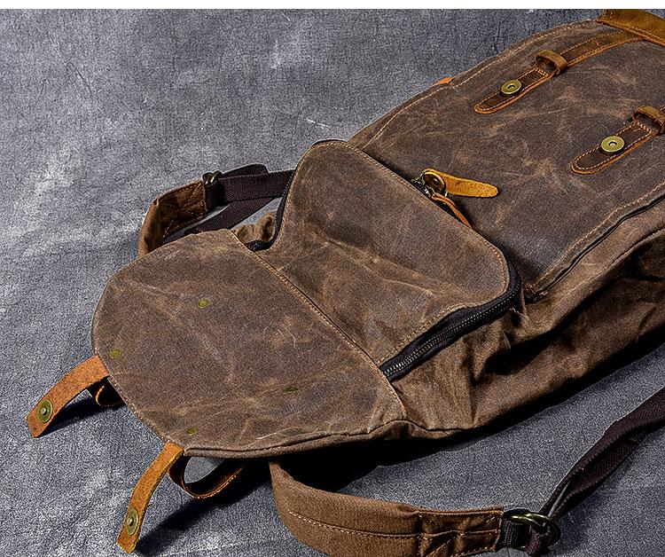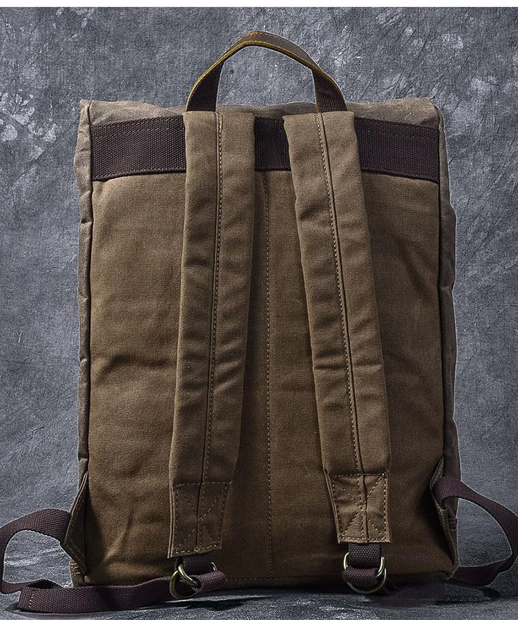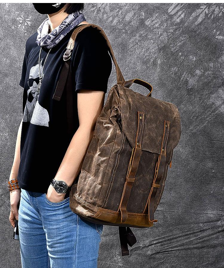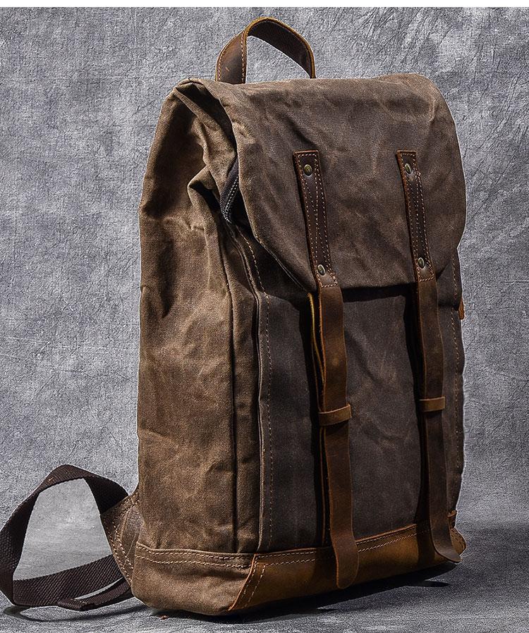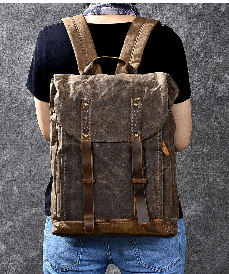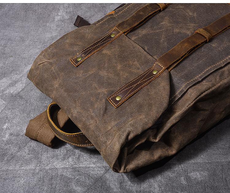 Waxed Canvas Leather Mens 15" Gray Computer Backpack Brown Travel Backpack College Backpack for Men
