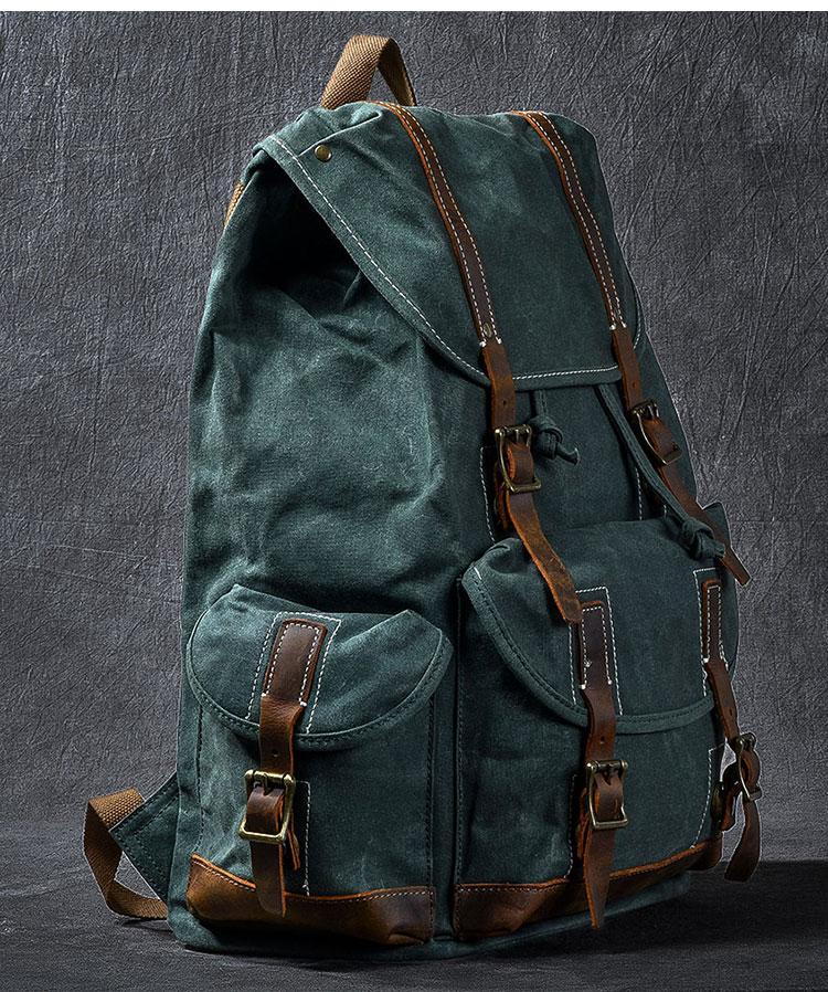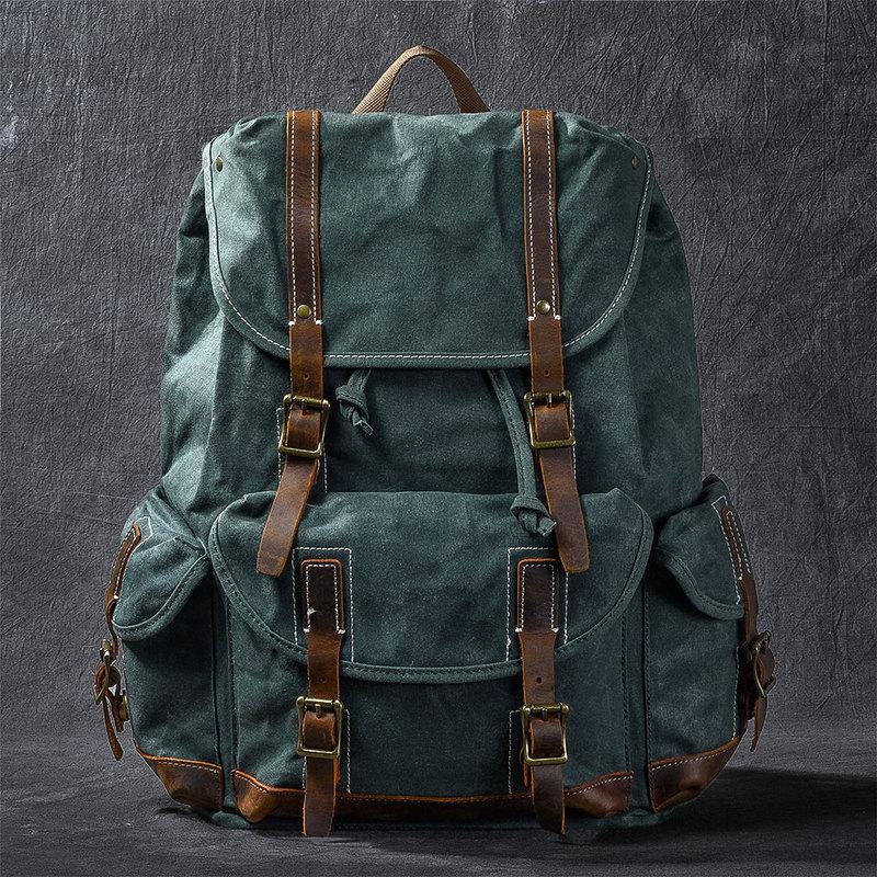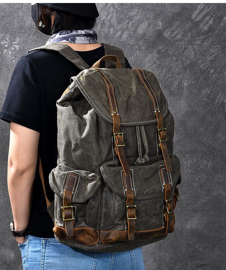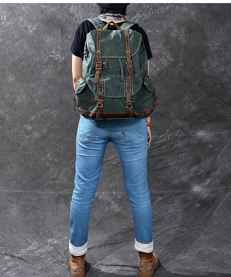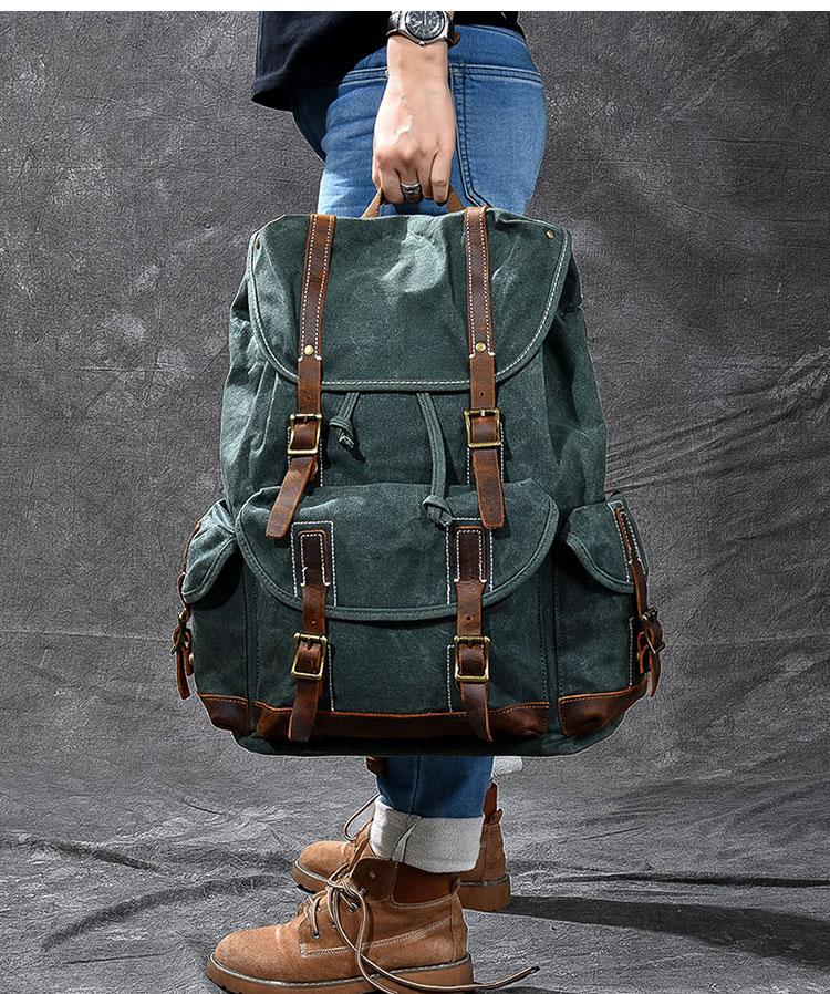 Design: Cool Canvas Leather Mens Womens 19" Khaki Backpack Green Travel Backpack College Backpack for Men
