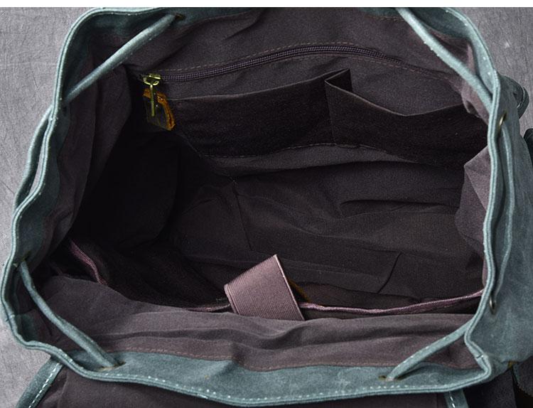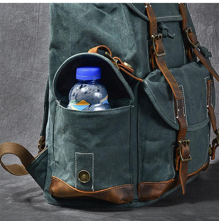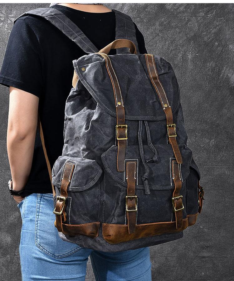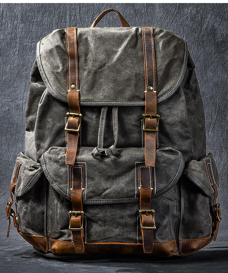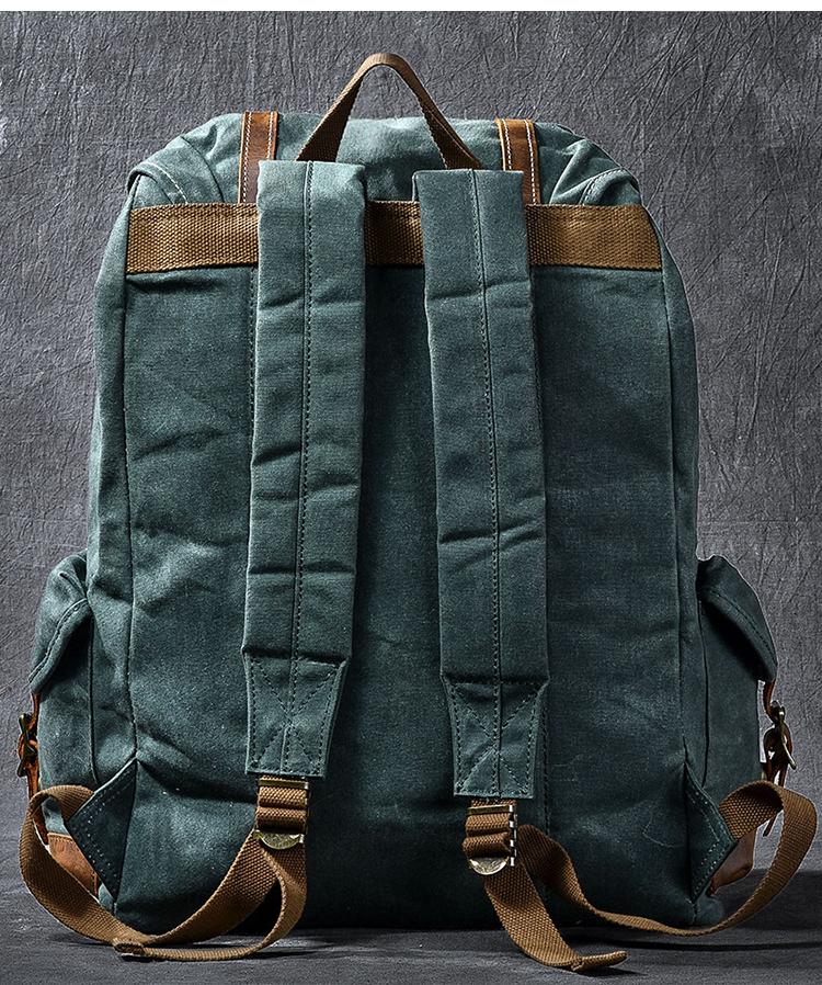 Design: Cool Canvas Leather Mens Womens 19" Khaki Backpack Green Travel Backpack College Backpack for Men