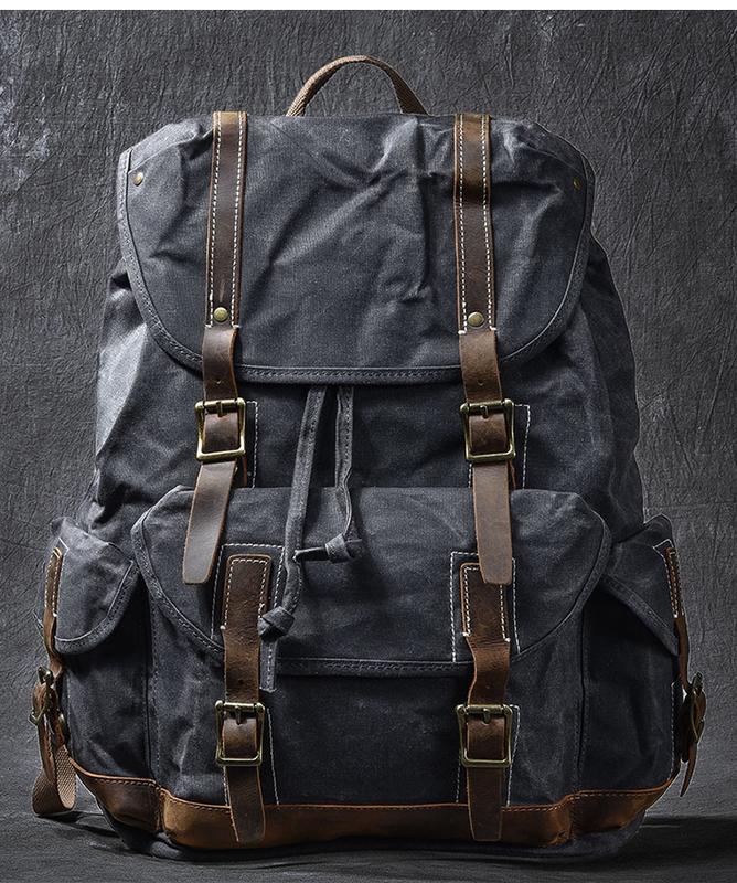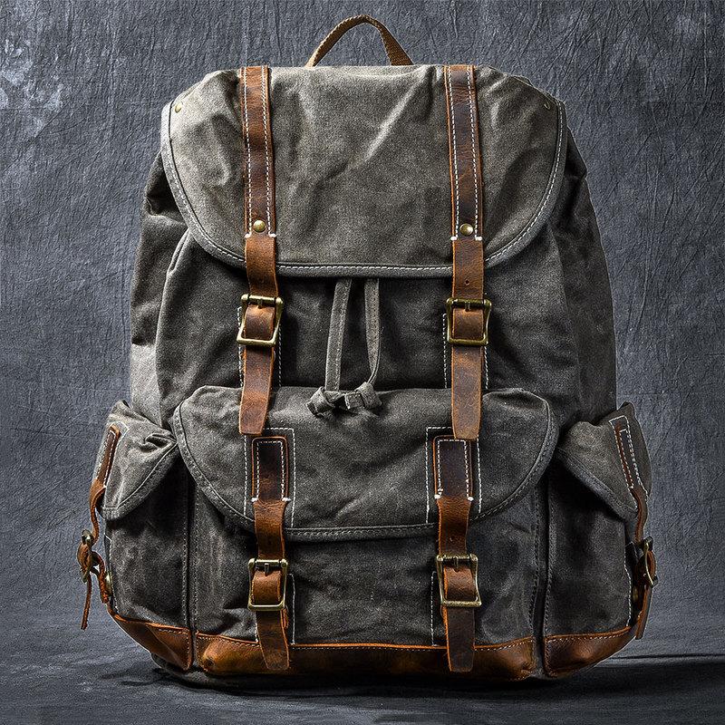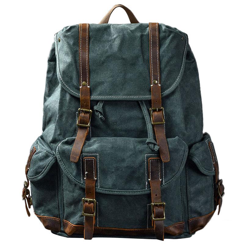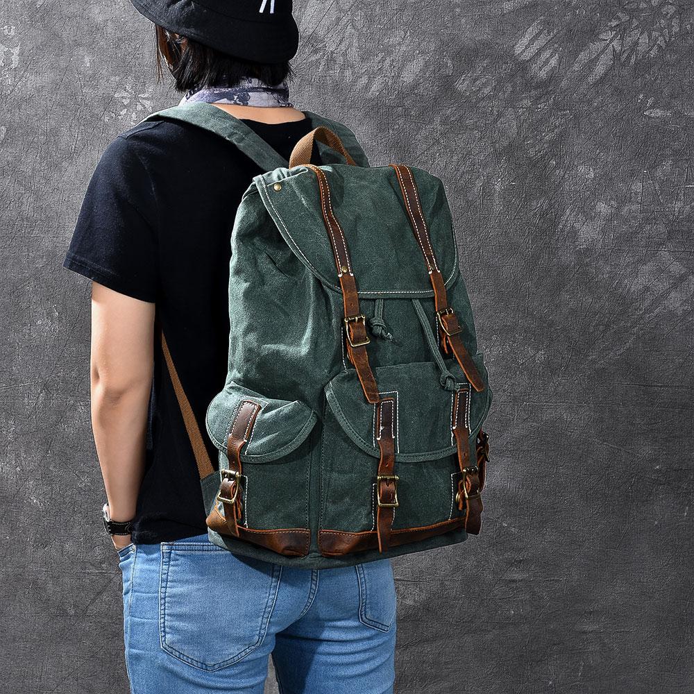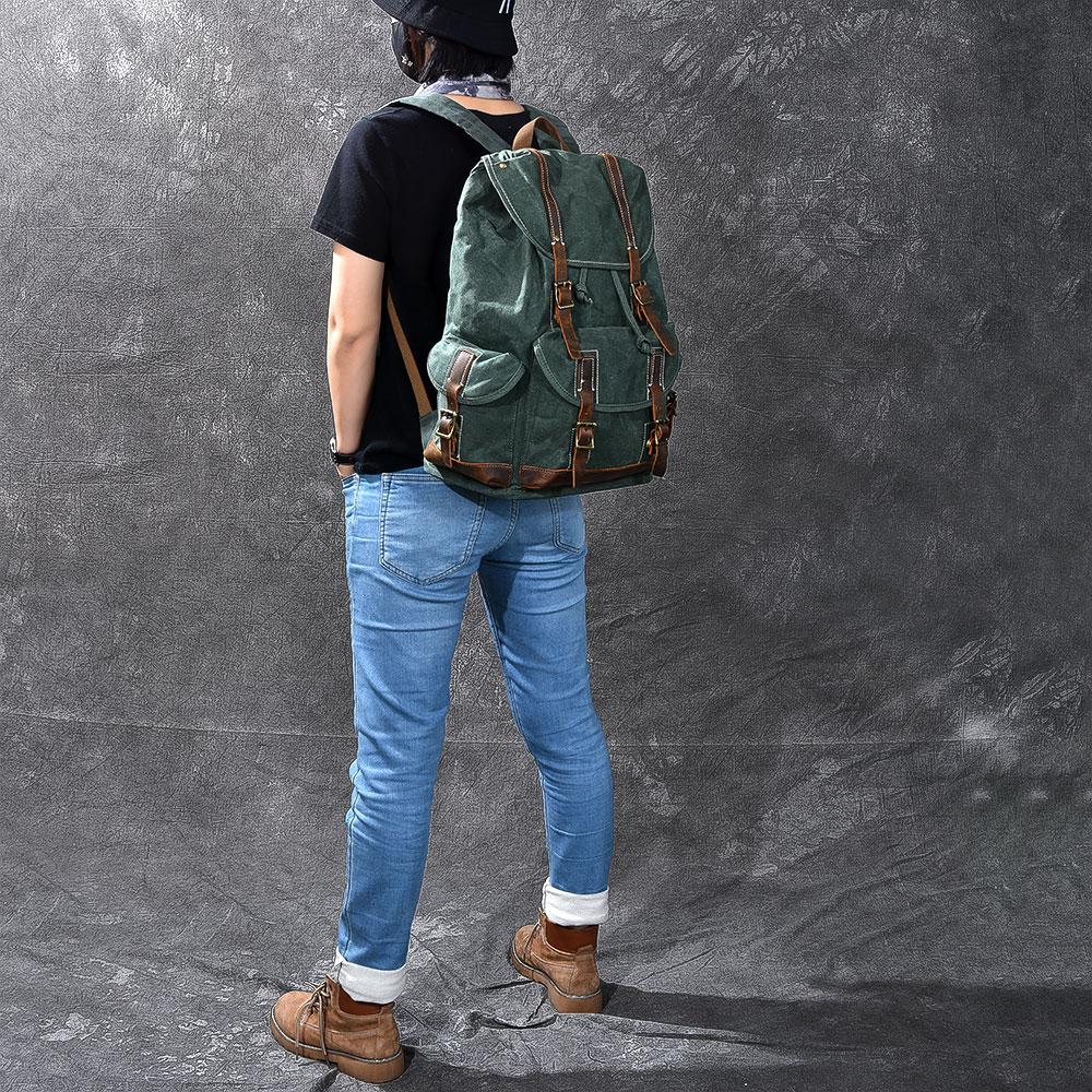 Style: Cool Canvas Leather Mens Womens 19" Khaki Backpack Green Travel Backpack College Backpack for Men