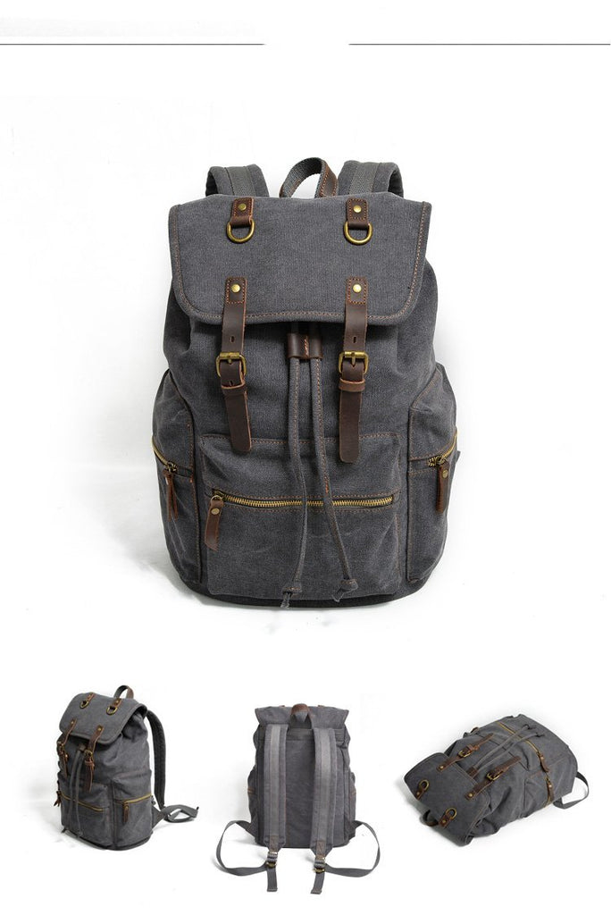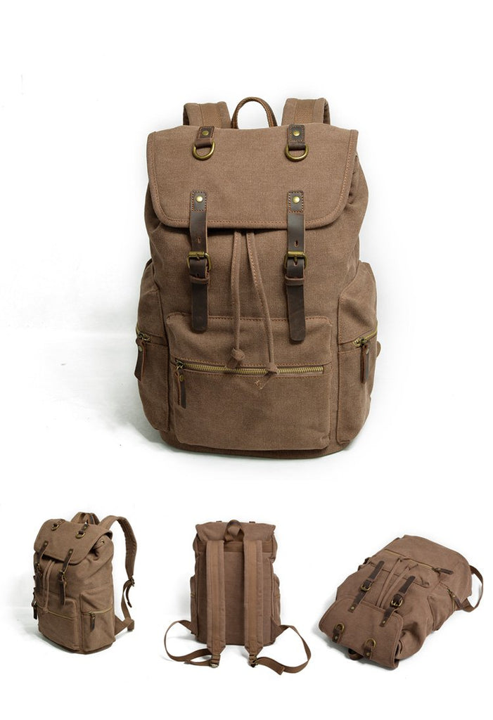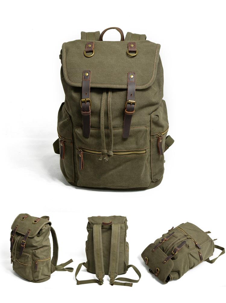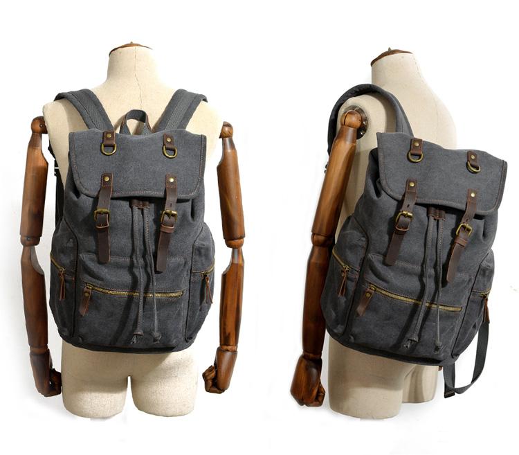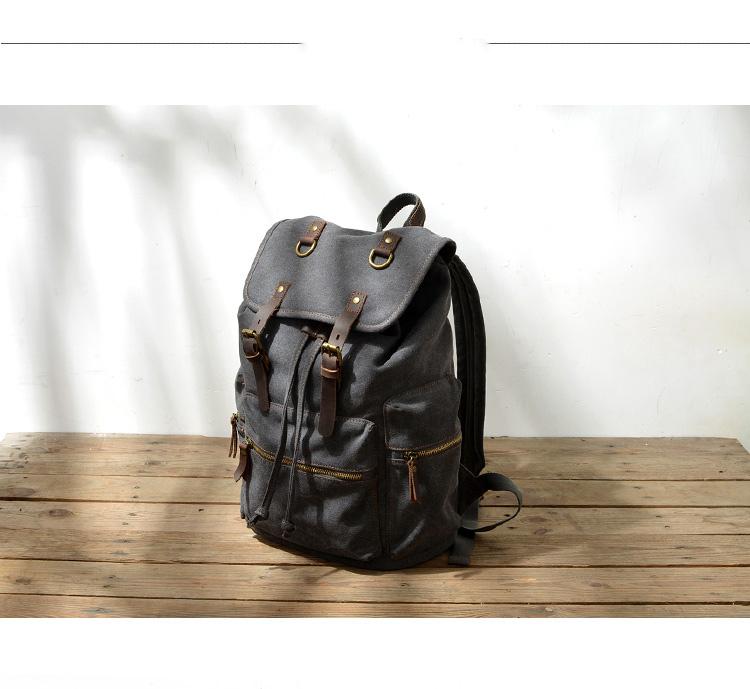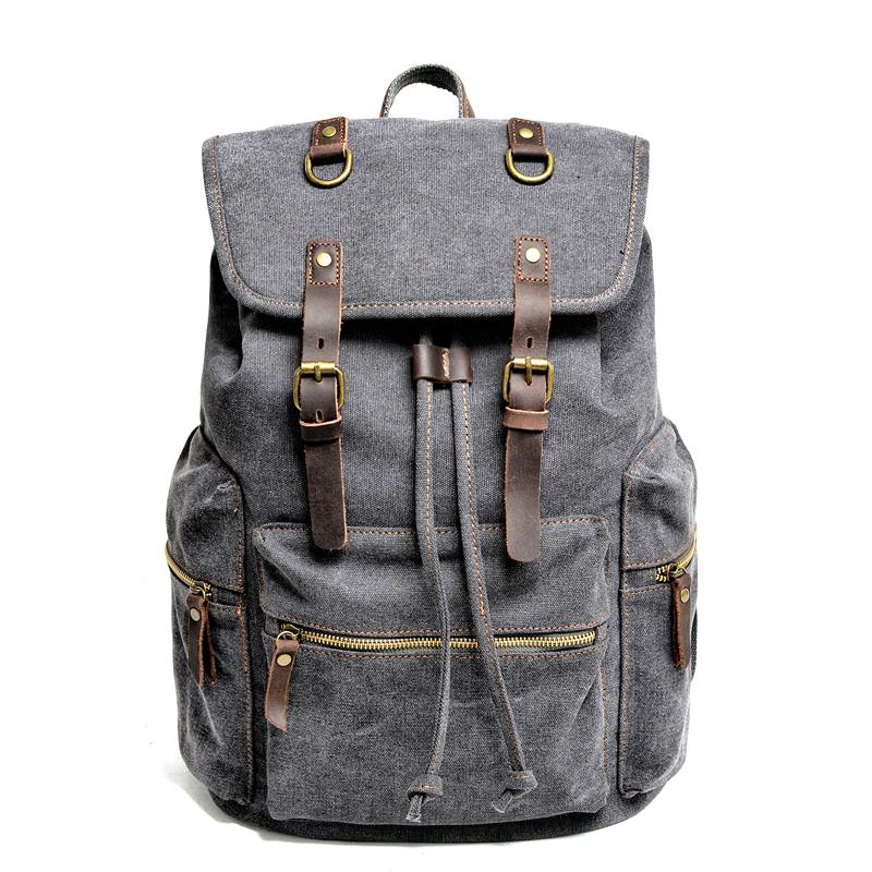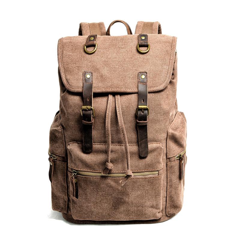 Design: Cool Canvas Leather Mens Womens College Backpack Travel Backpack Computer Backpack for Men