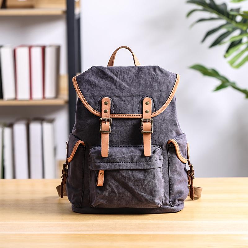 Style: Cool Canvas Leather Mens Womens Large Backpack Travel Backpack College Bag for Men