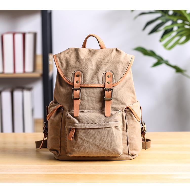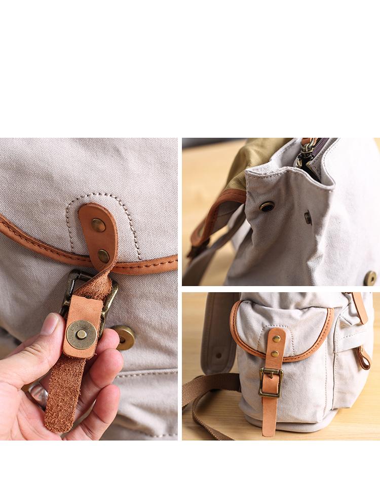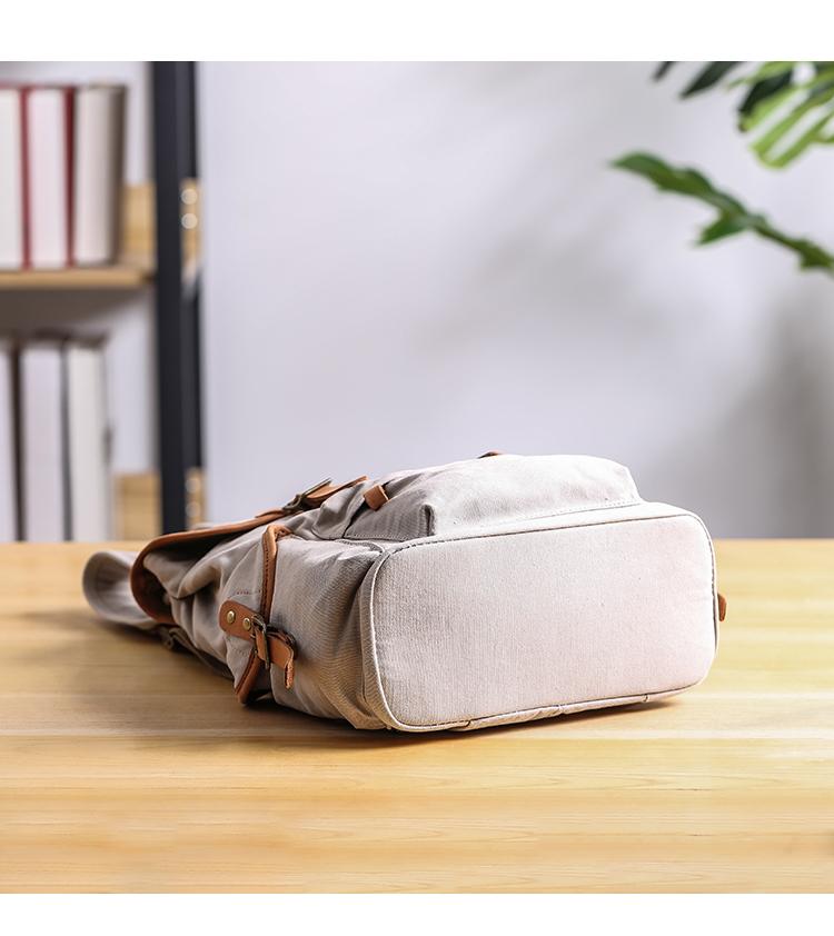Design: Cool Canvas Leather Mens Womens 13'' White Backpack Khaki Travel Backpack College Backpack for Men
