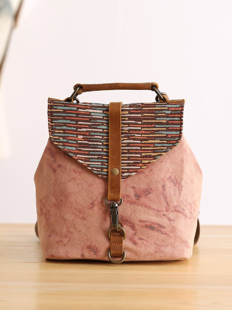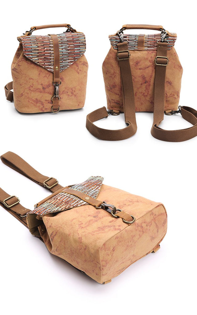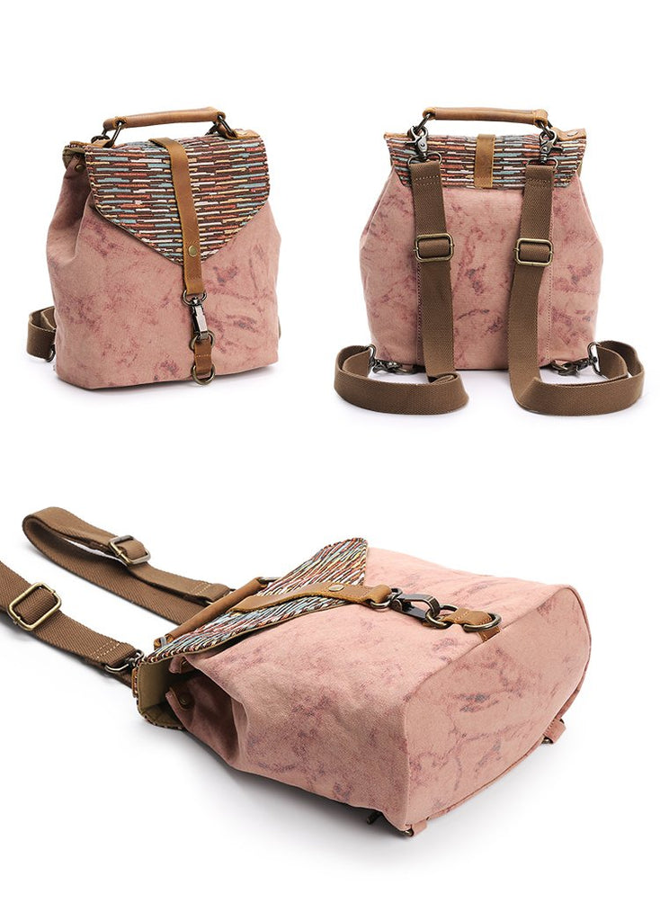Design: Cool Canvas Leather Mens Womens Small Pink Backpack Khaki Travel Backpack College Backpack for Men