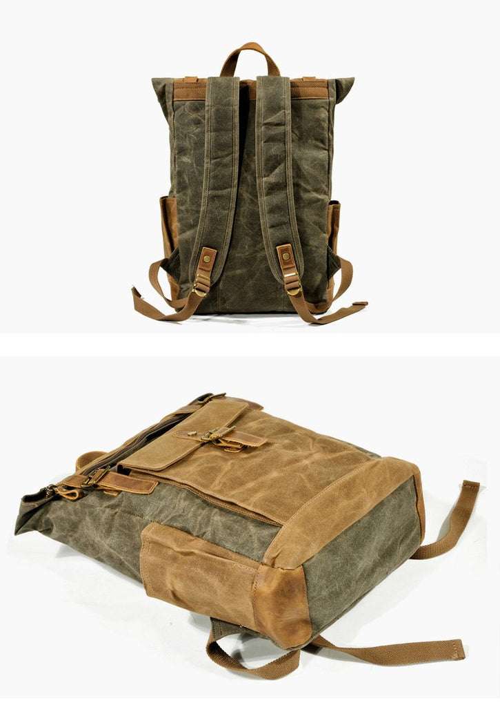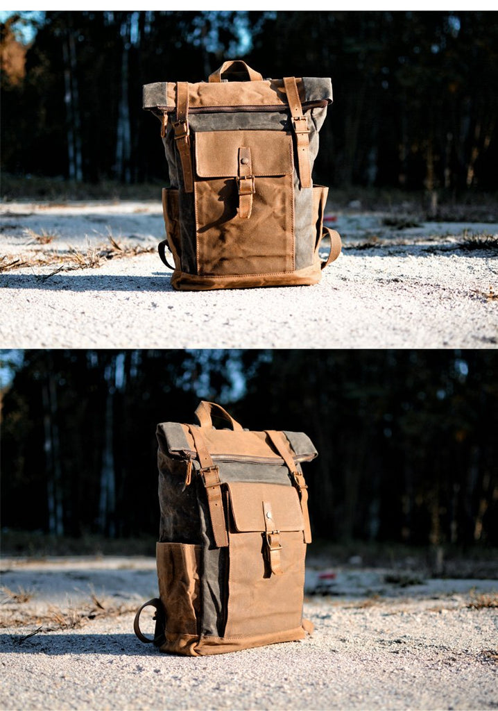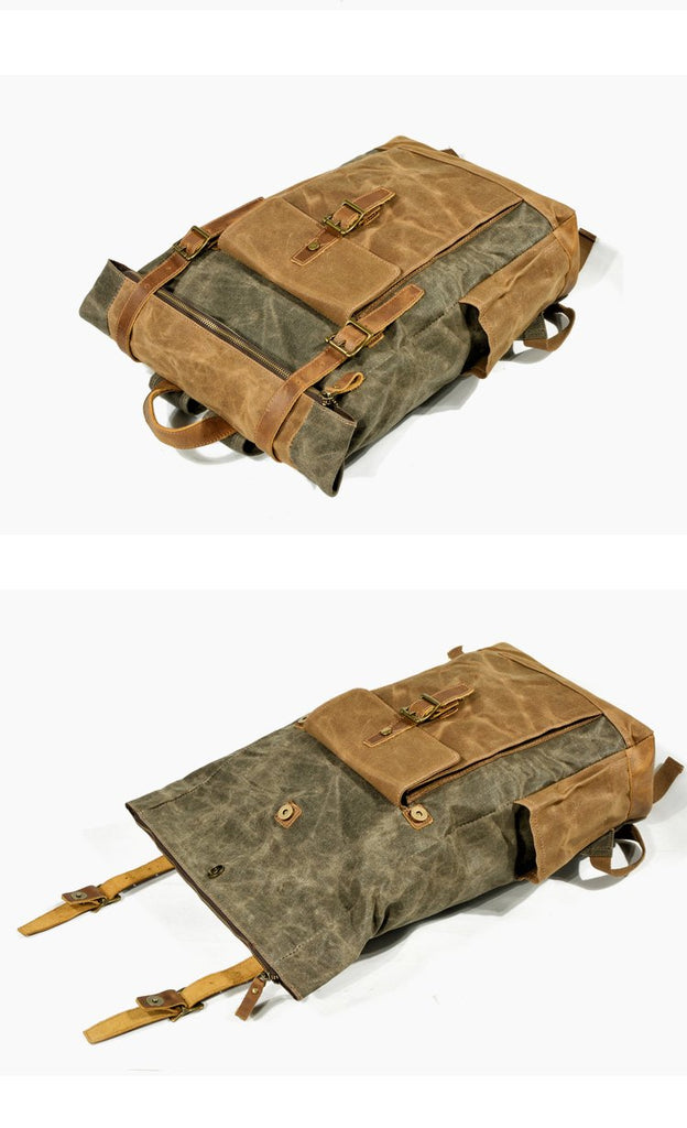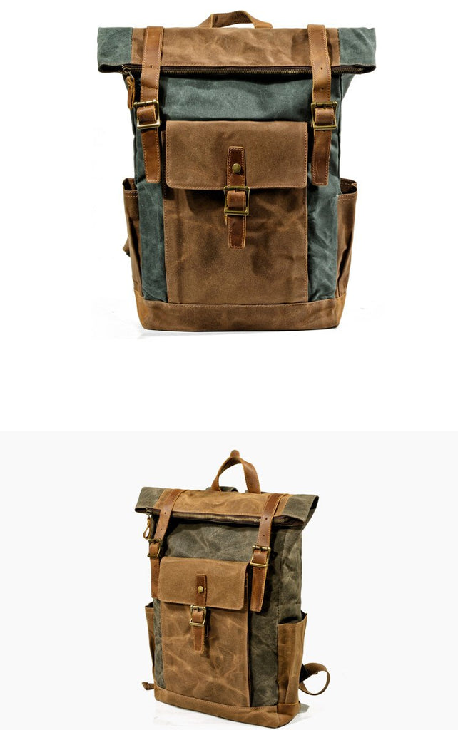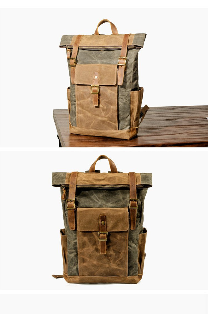 Design: Cool Waxed Canvas Mens Waterproof Green Travel Backpack 15'' Gray Computer Backpack Hiking Backpack for Men
