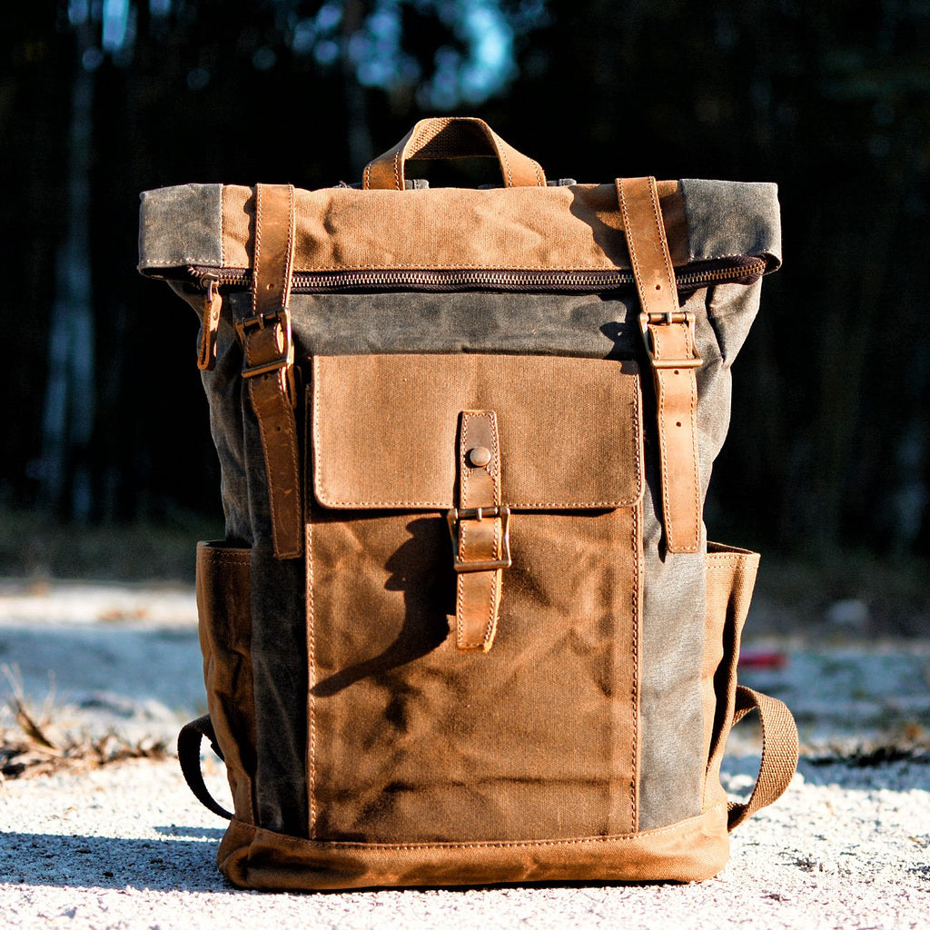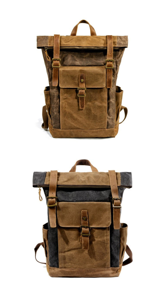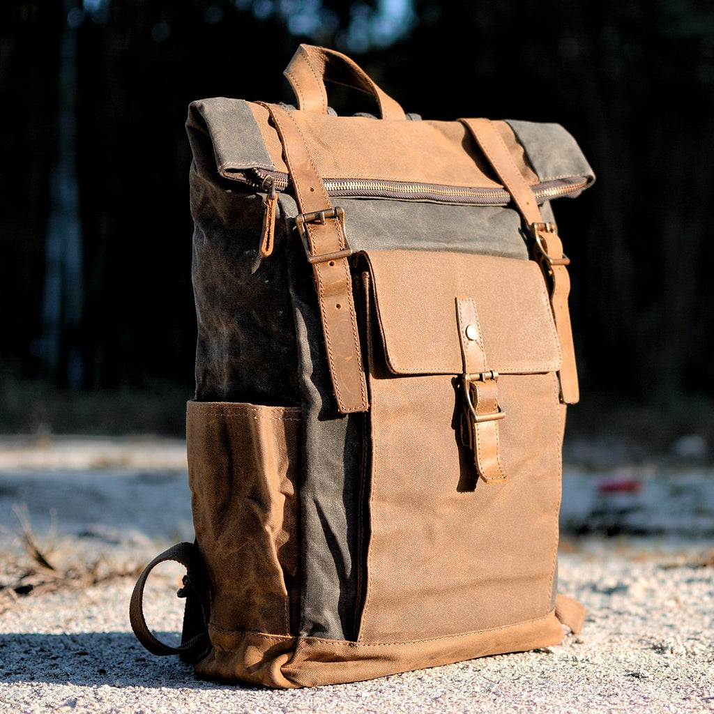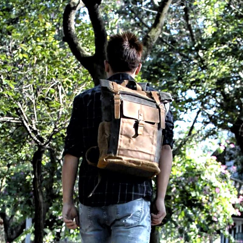 Design: Cool Waxed Canvas Mens Waterproof Green Travel Backpack 15'' Gray Computer Backpack Hiking Backpack for Men