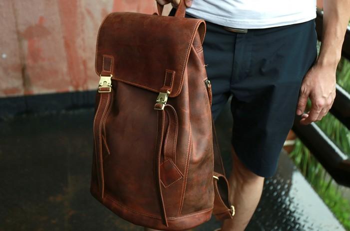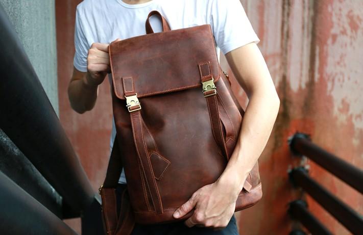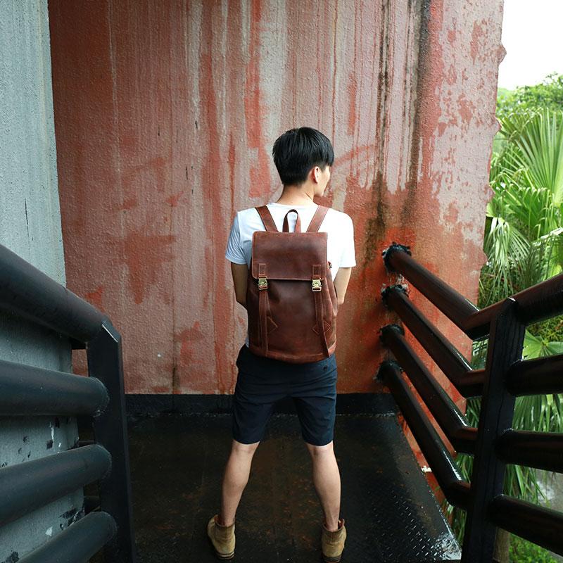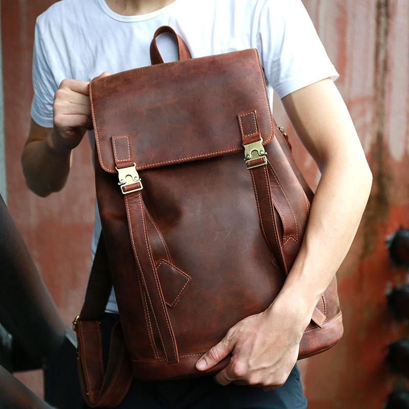 Style: Cool Coffee Mens Leather Backpack Travel Backpacks Laptop Backpacks for men