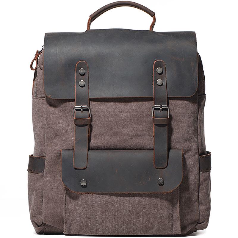 Design: Canvas Gray Mens Cool Backpack Canvas Travel Bag Canvas School Bag for Men