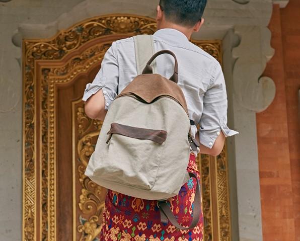 Design: Canvas Gray Mens Cool Backpack Canvas Travel Bag Canvas School Bag for Men