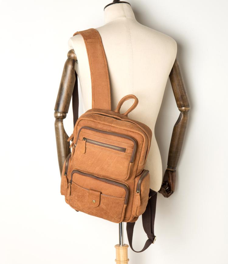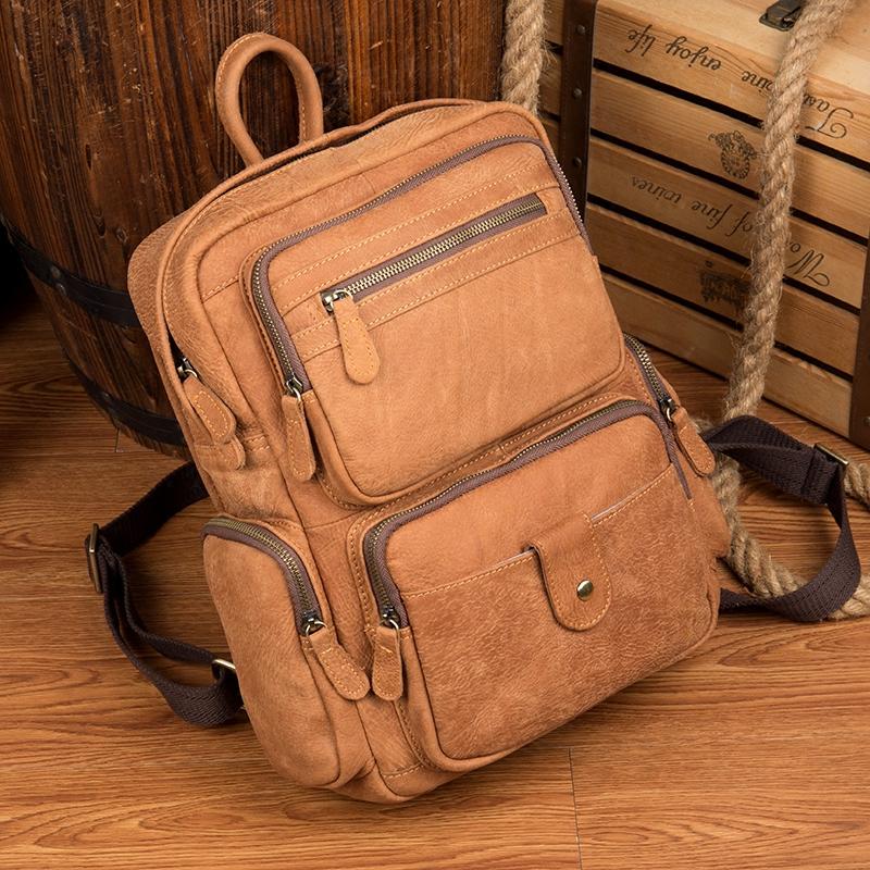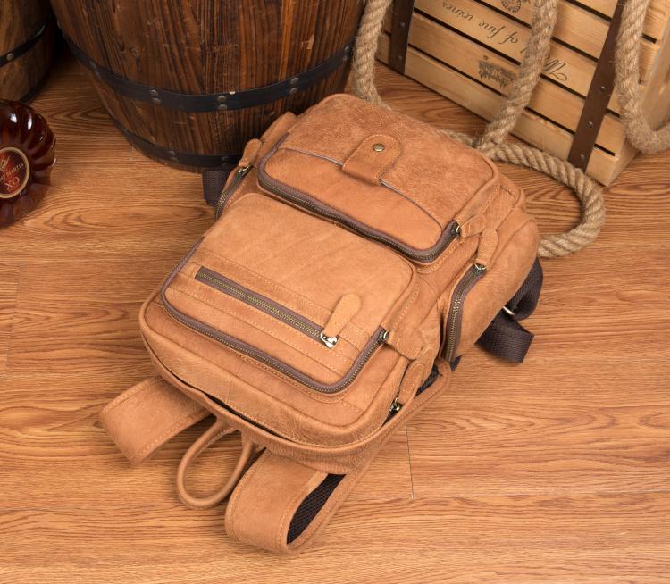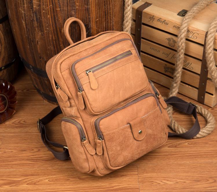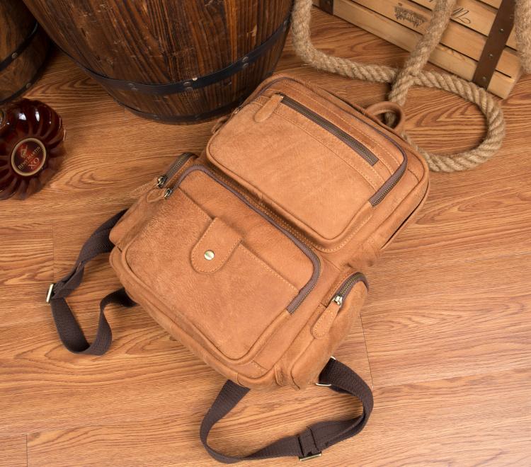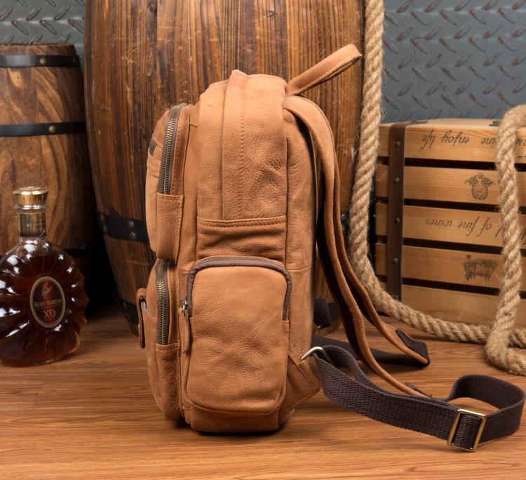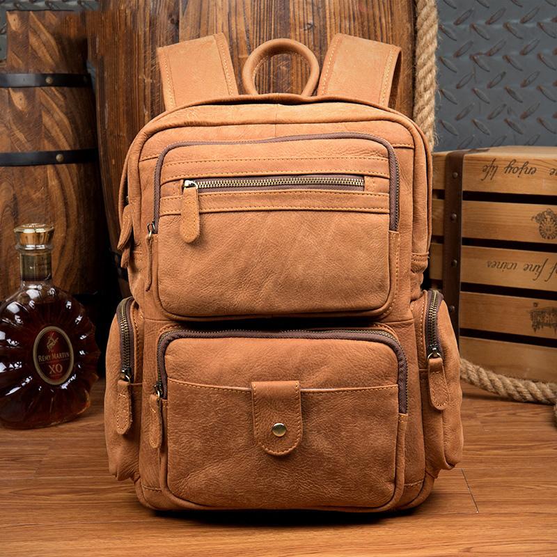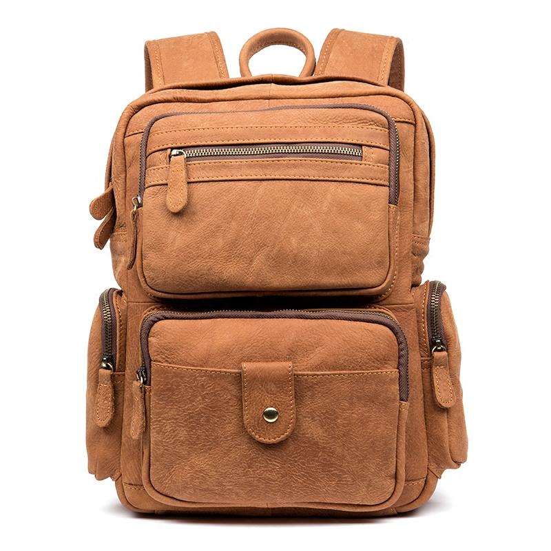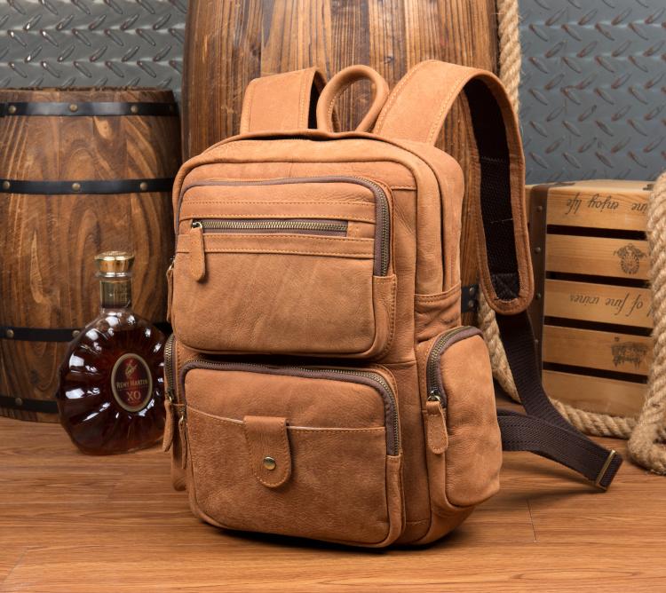 Design: Cool Khaki Mens Leather 13inches Computer Backpack Camel Travel Backpack School Backpack for men