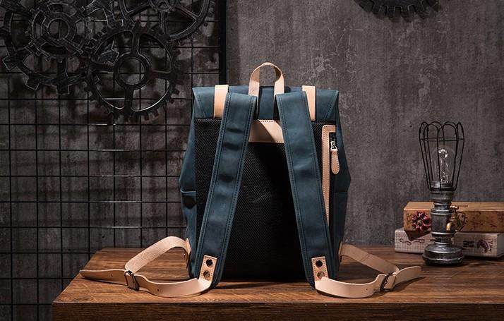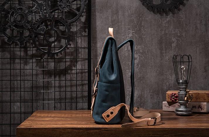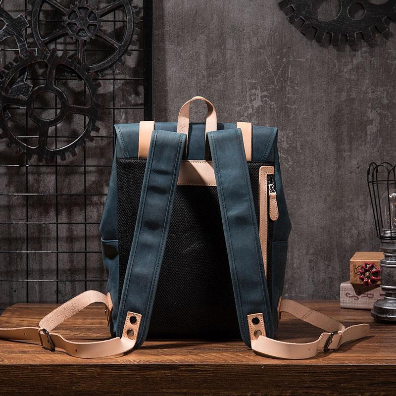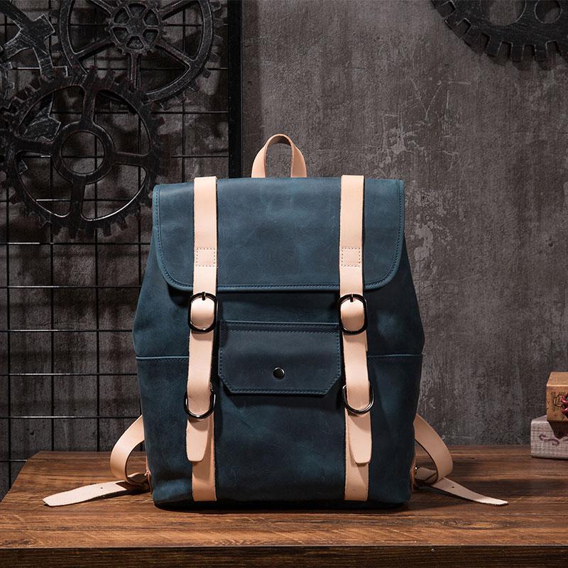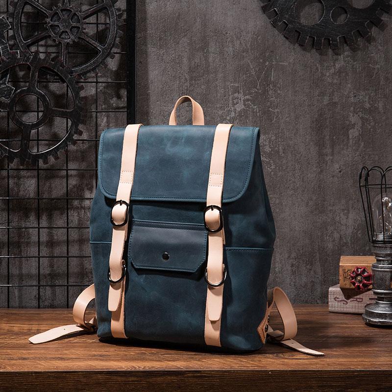 Style: Cool Mens Blue Leather Backpack School Backpack Leather Laptop Backpack for Men
