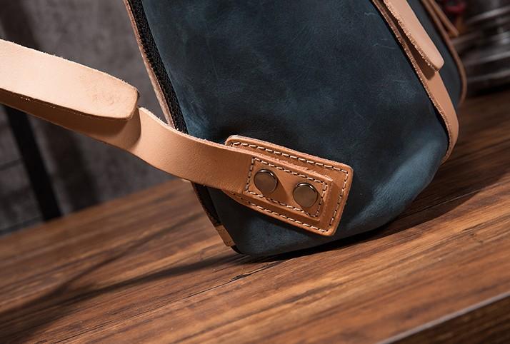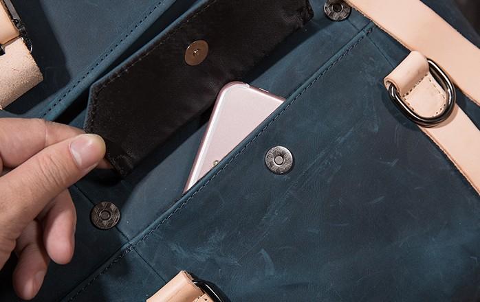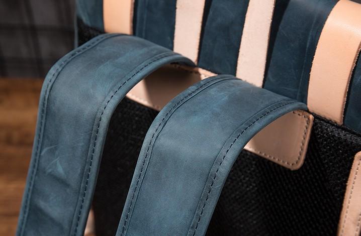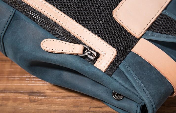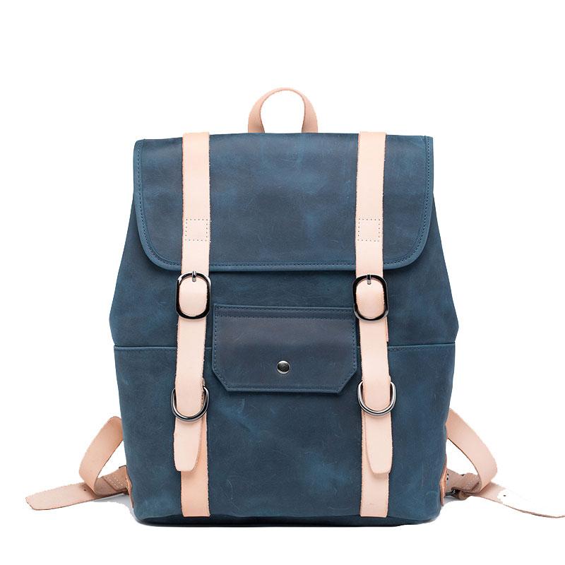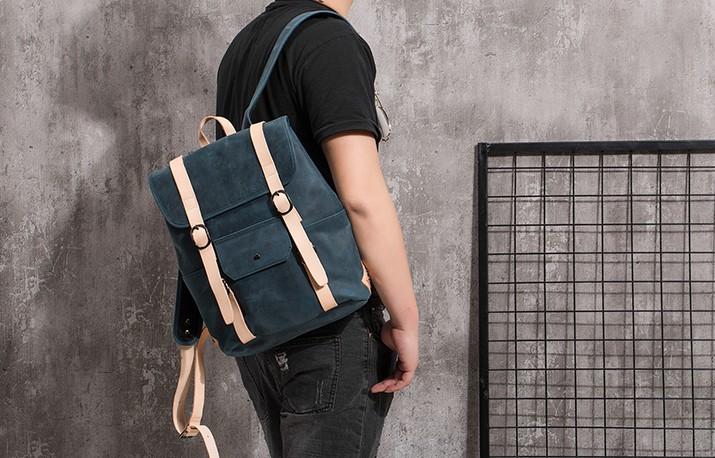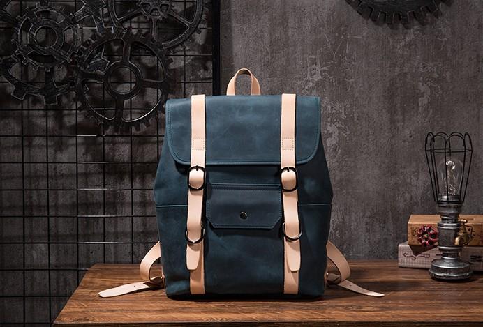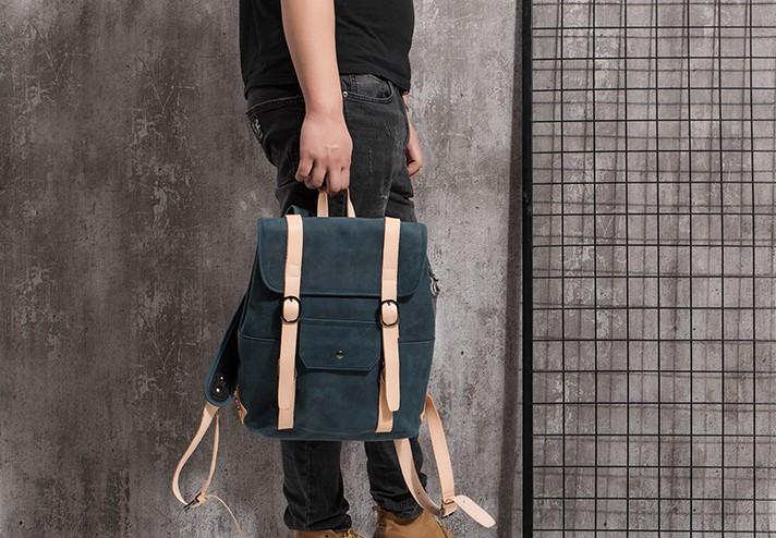 Design: Cool Mens Blue Leather Backpack School Backpack Leather Laptop Backpack for Men