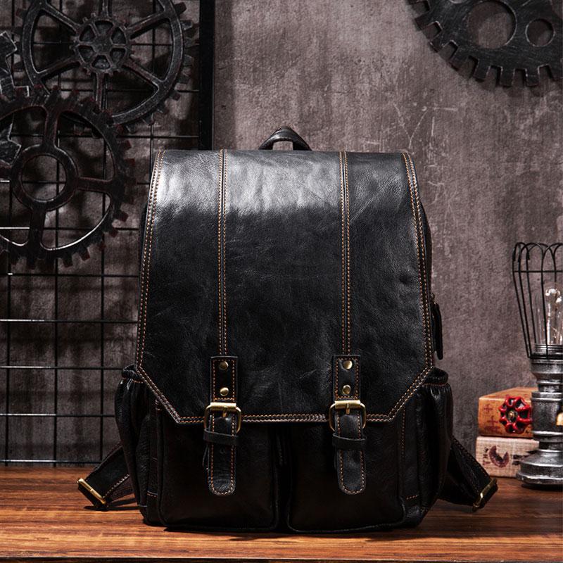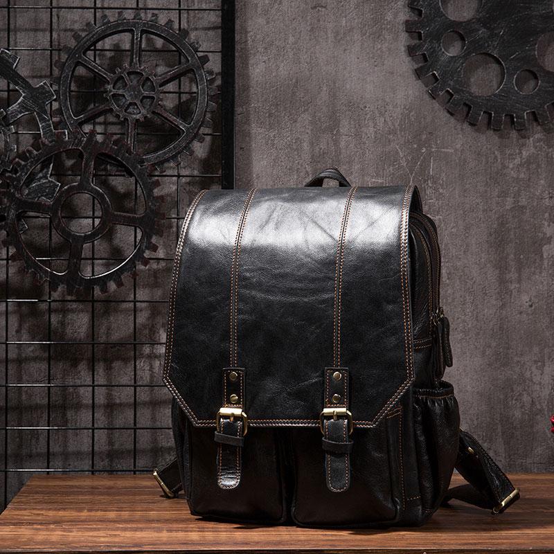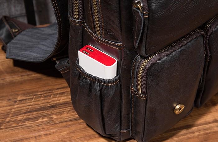 Design: Cool Mens Leather 15inch Laptop Backpack Travel Backpack Leather School Backpacks for Men