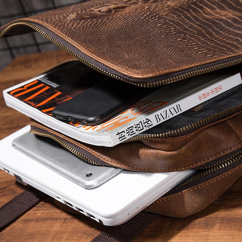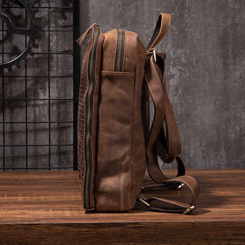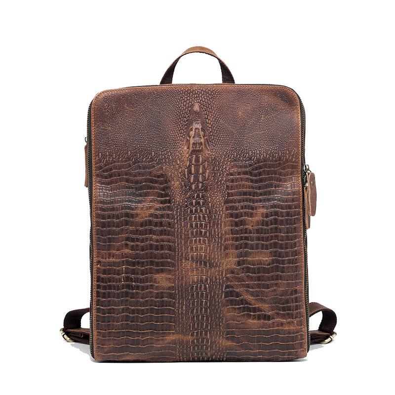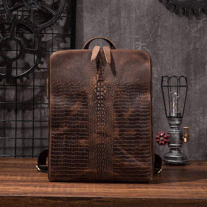 Cool Mens Leather Alligator Pattern Backpack Travel Backpacks Leather Hiking Backpack for Men