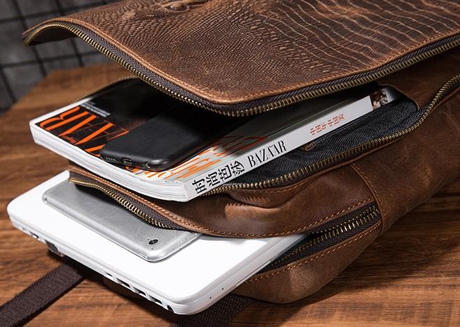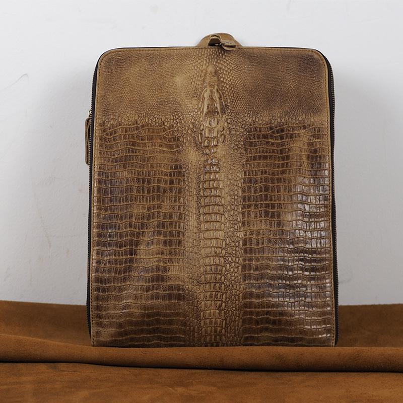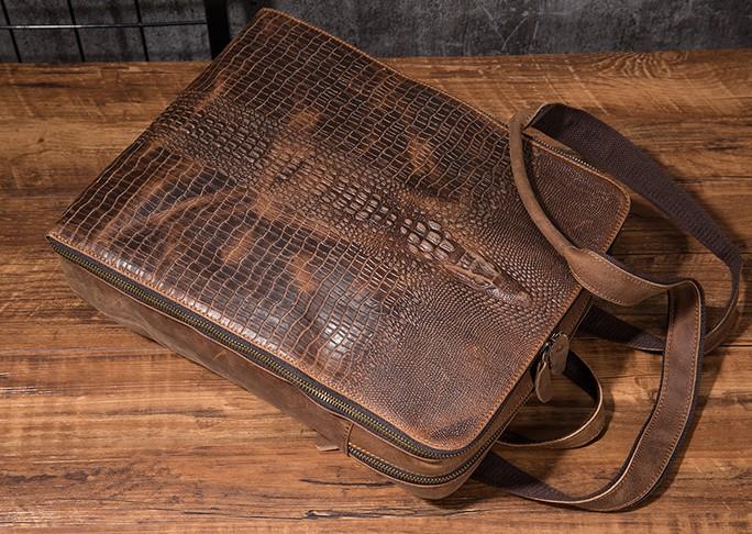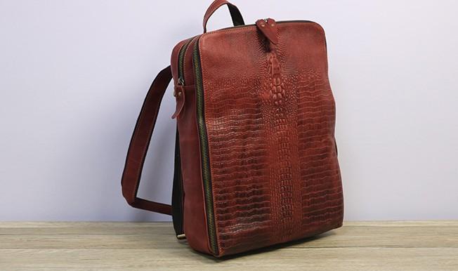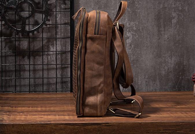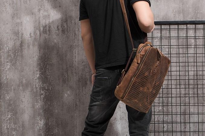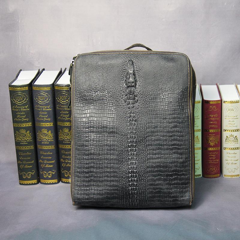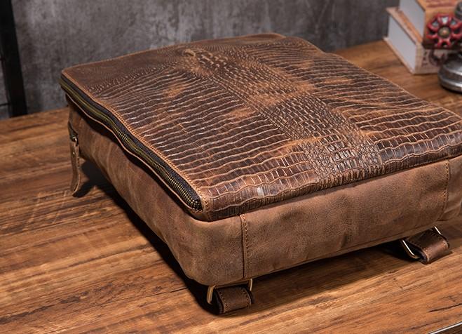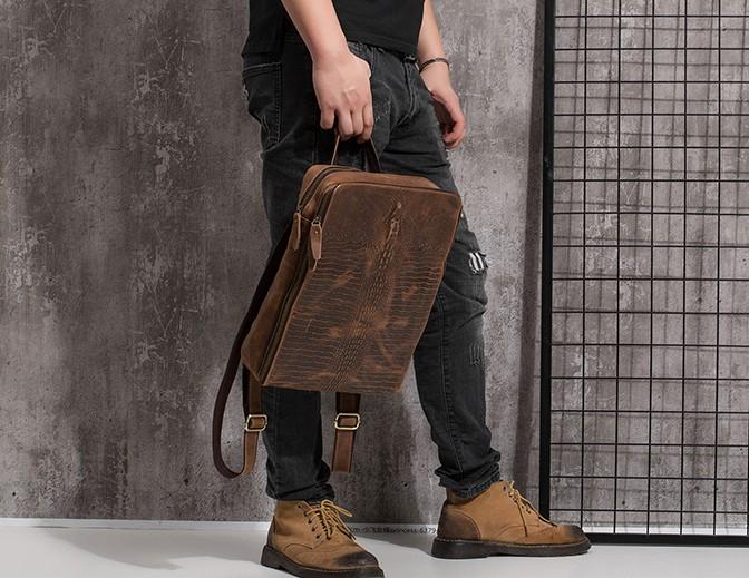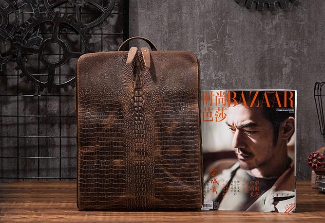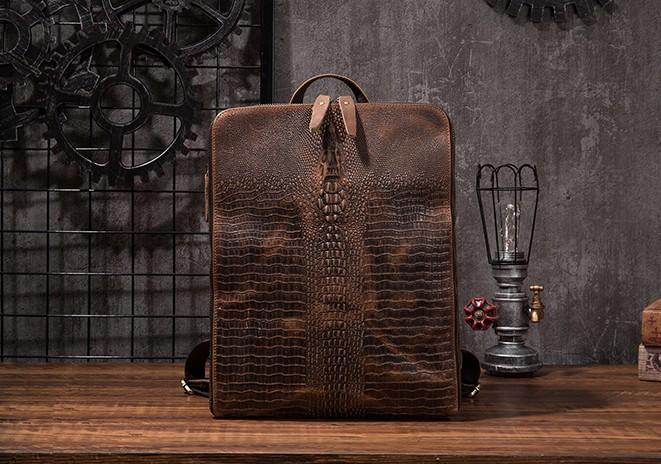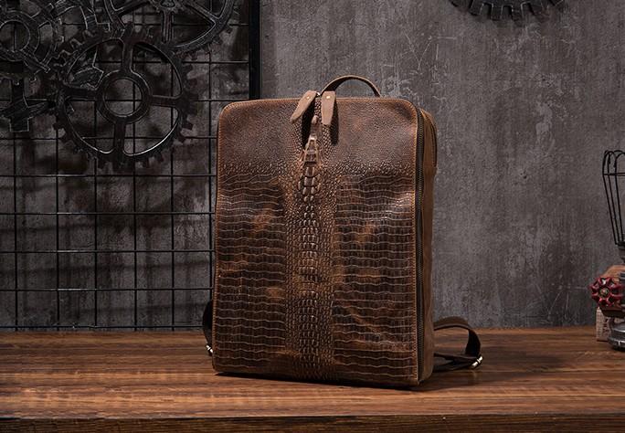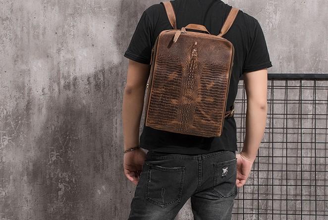 Design: Cool Mens Leather Alligator Pattern Backpack Travel Backpacks Leather Hiking Backpack for Men