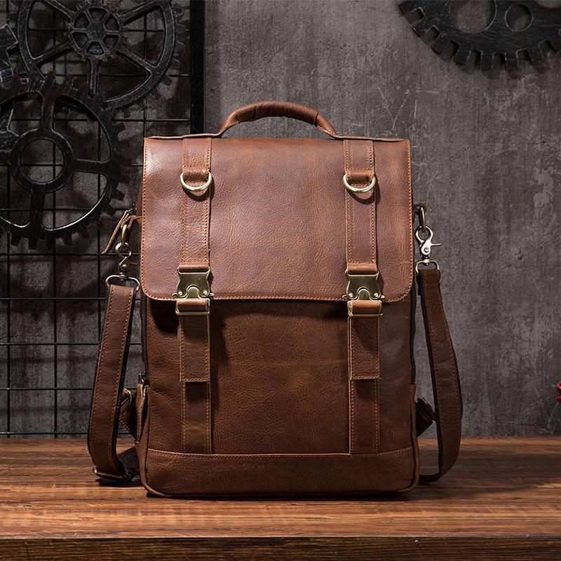 Design: Cool Mens Leather Backpack School Backpack Leather Laptop Backpack for Men