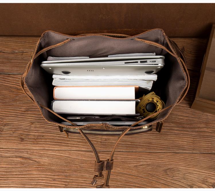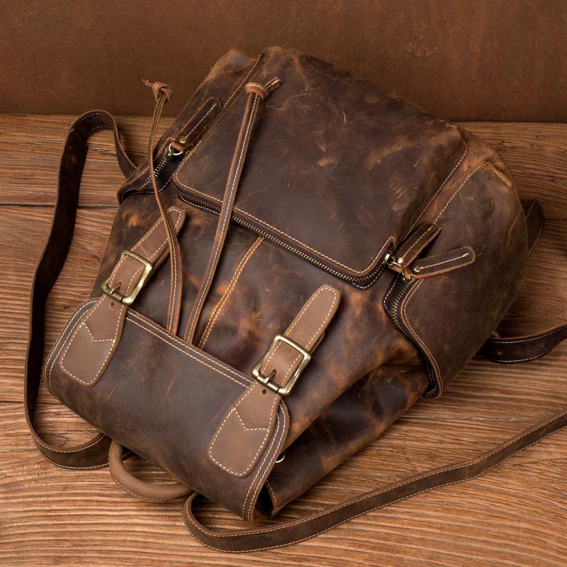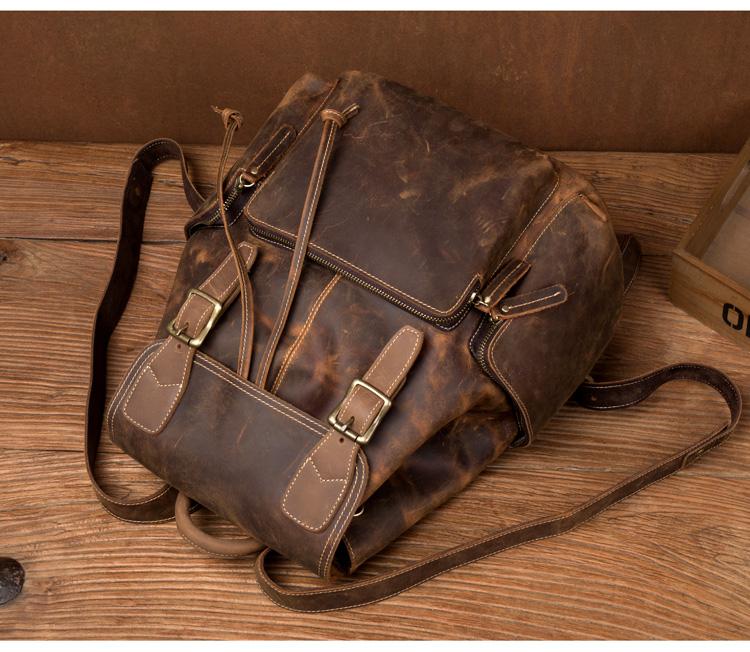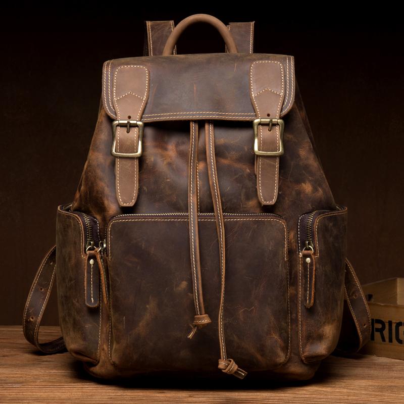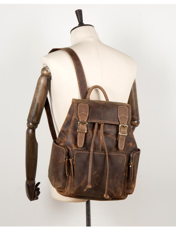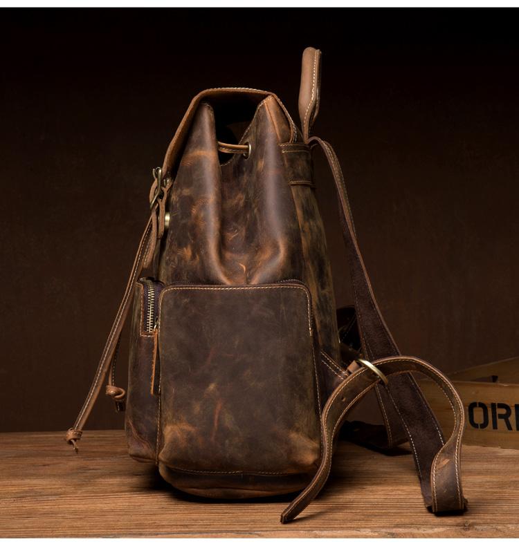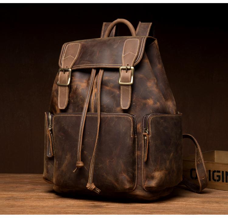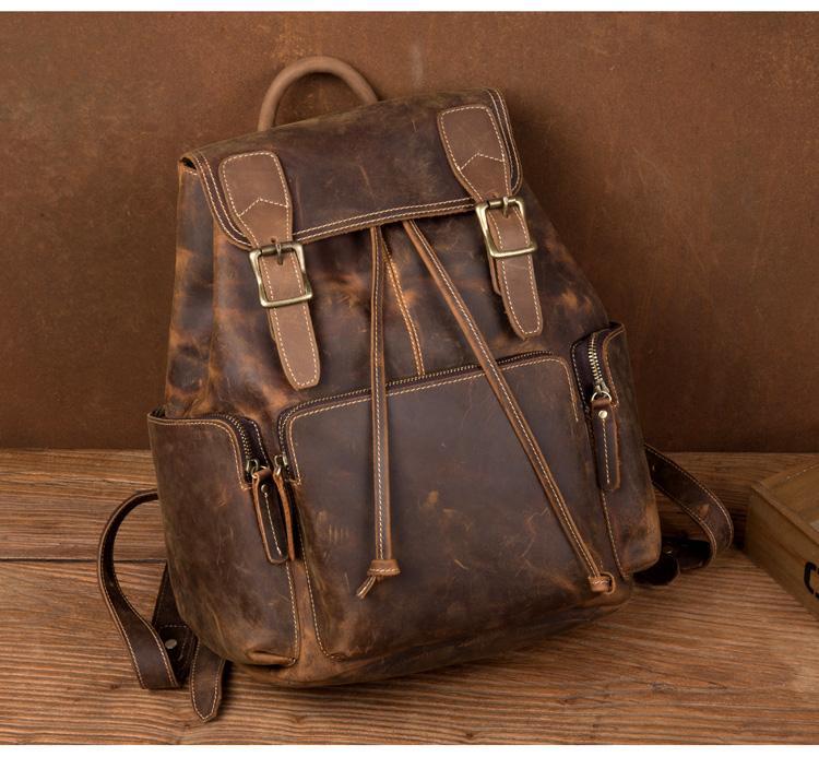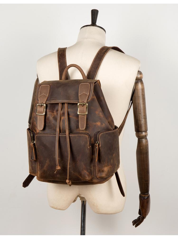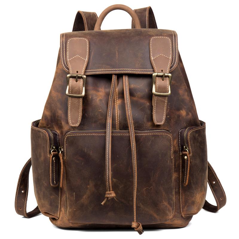 Design: Dark Brown Business Mens Leather 13 inches Computer Backpacks Cool Travel Backpacks School Backpack for men