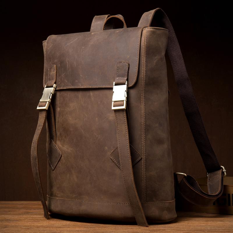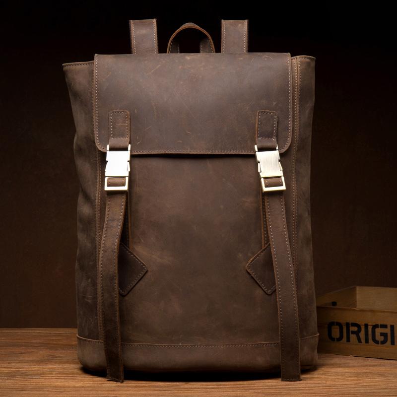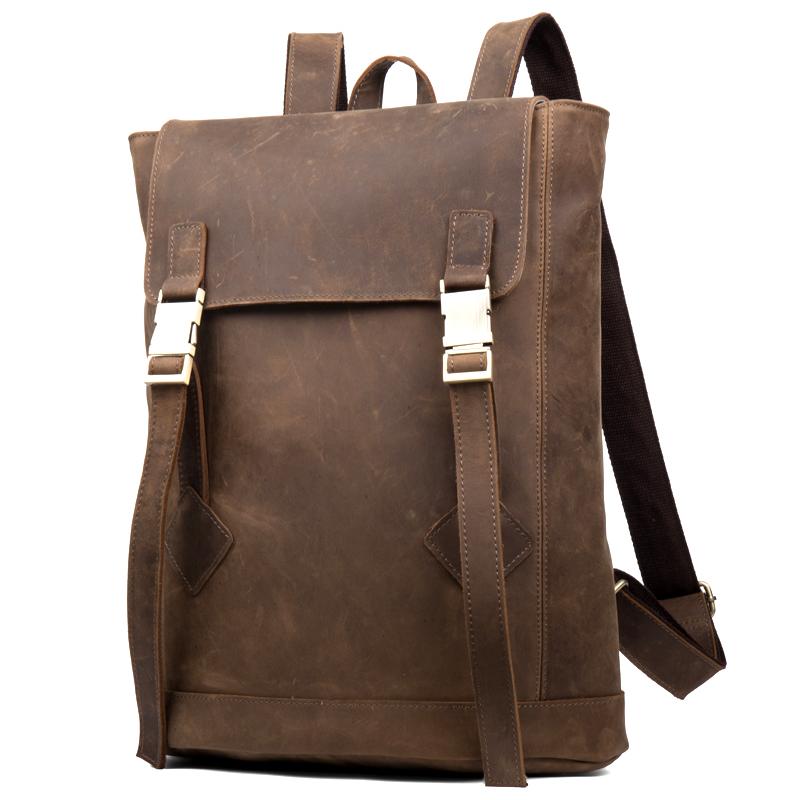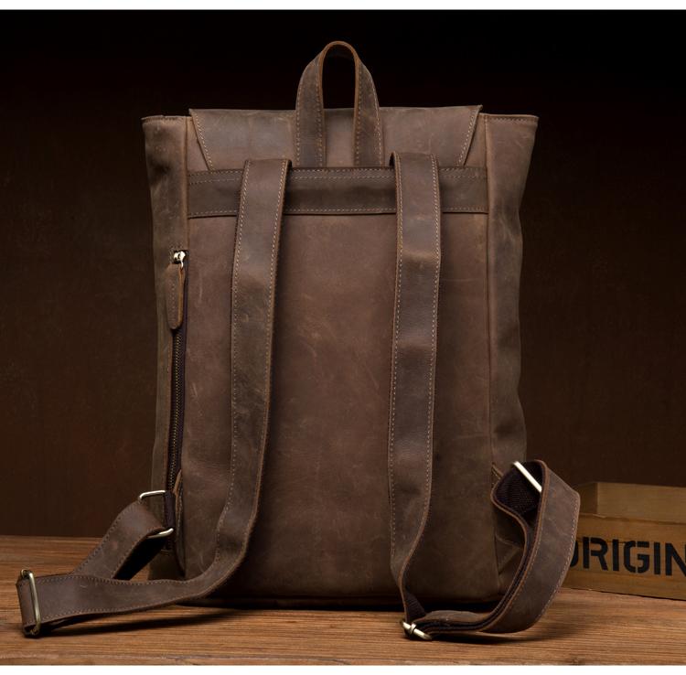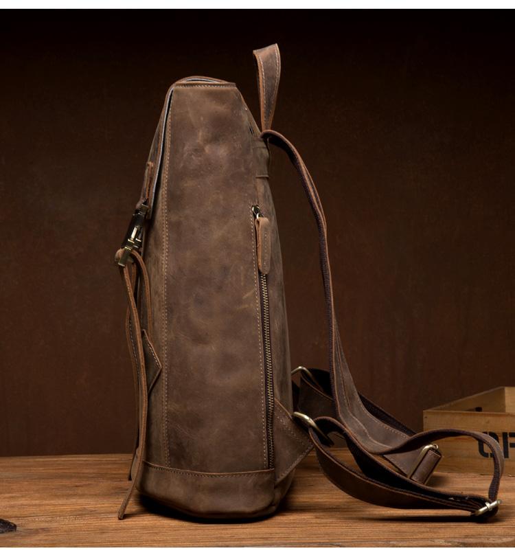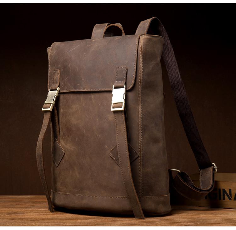 Design: Dark Brown Casual Leather Mens 14 inches Travel Backpacks Computer Backpack for Men