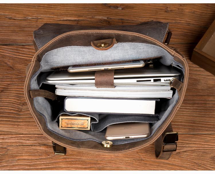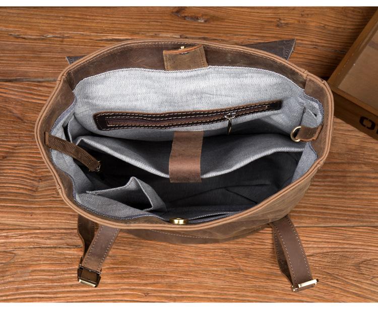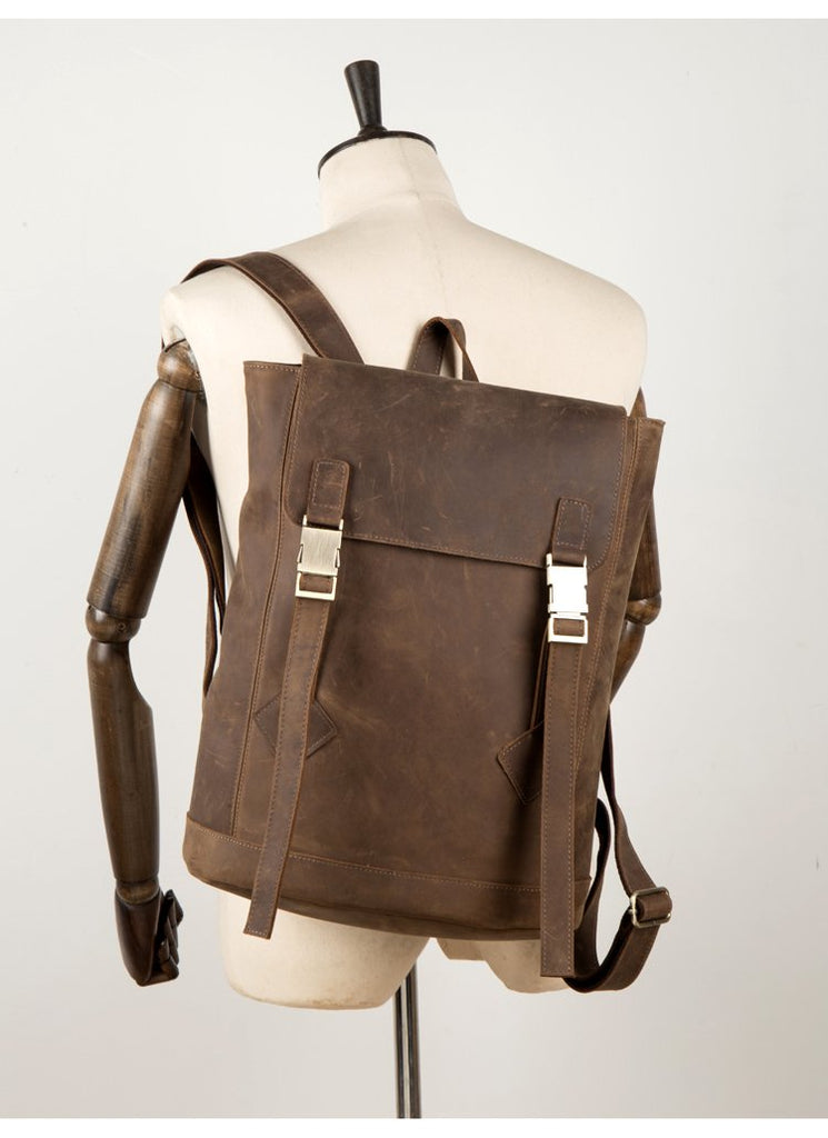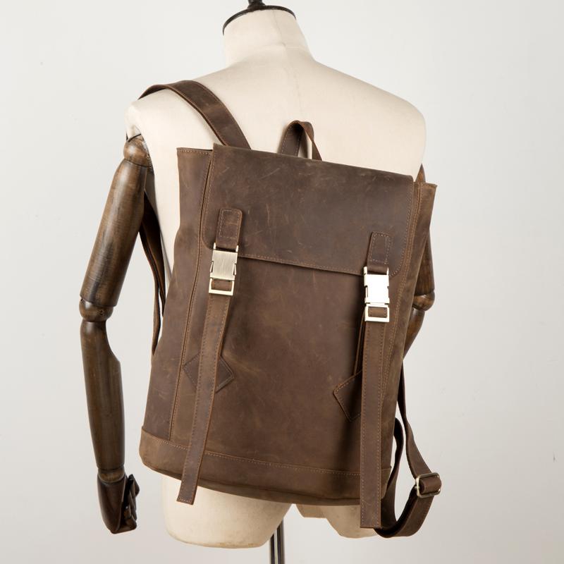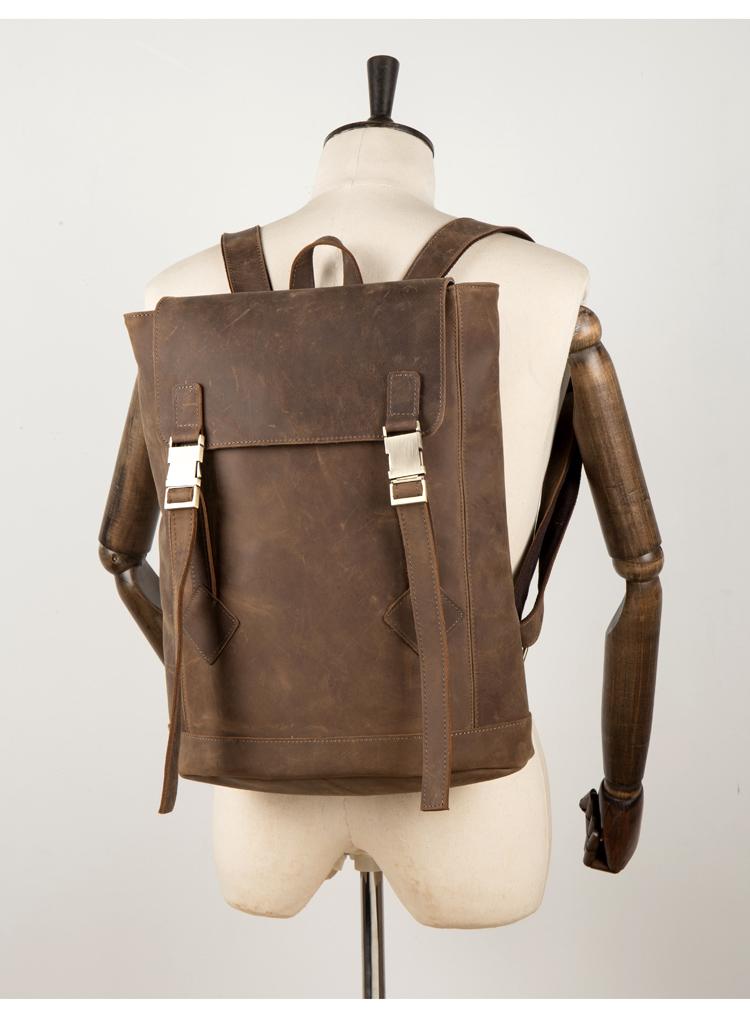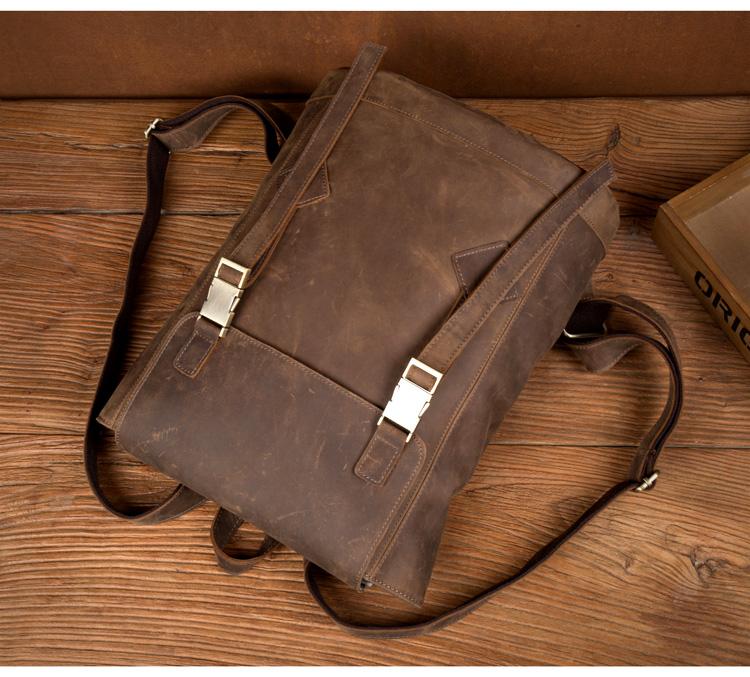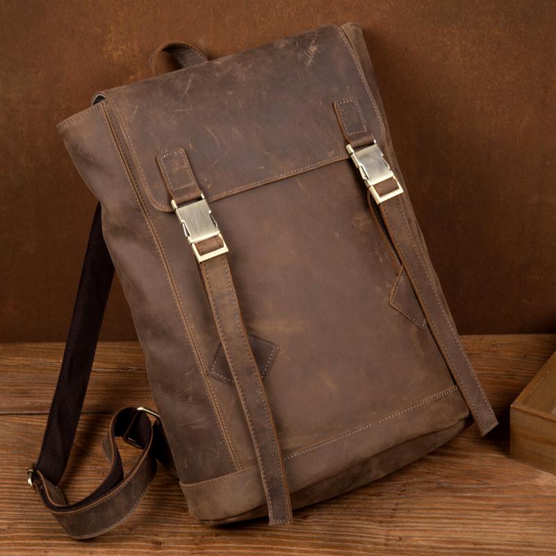 Design: Dark Brown Casual Leather Mens 14 inches Travel Backpacks Computer Backpack for Men