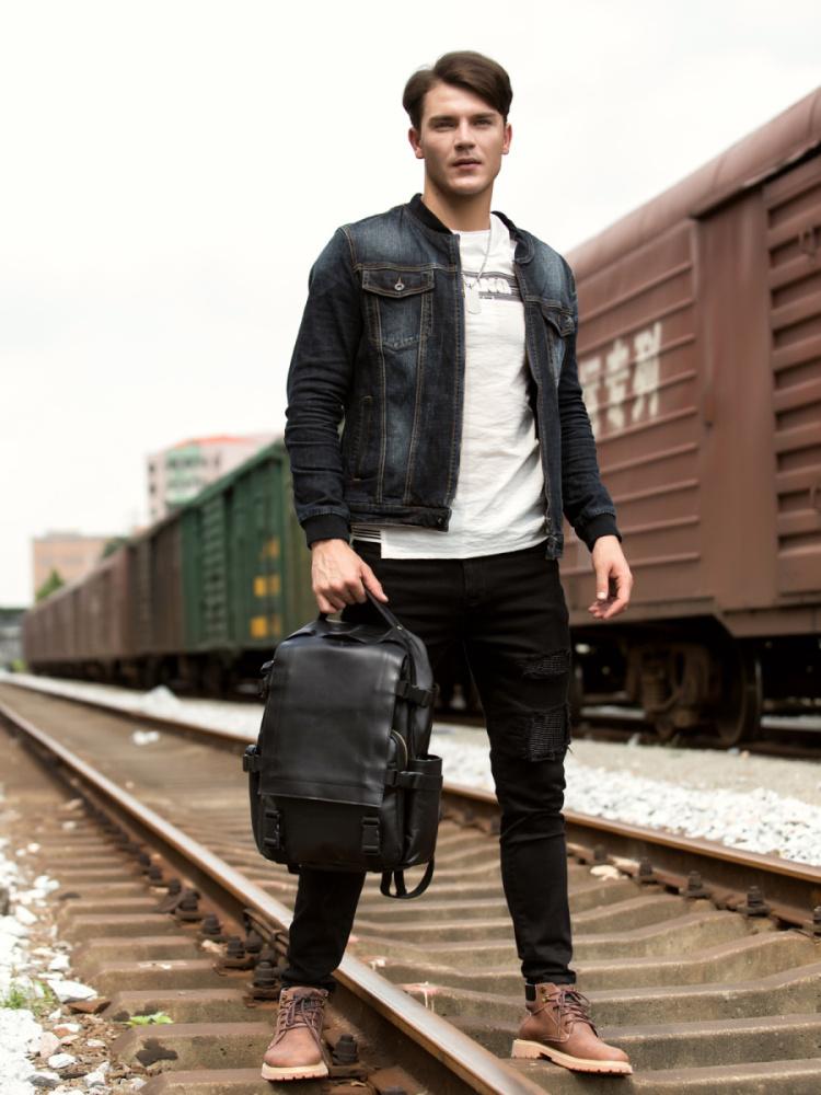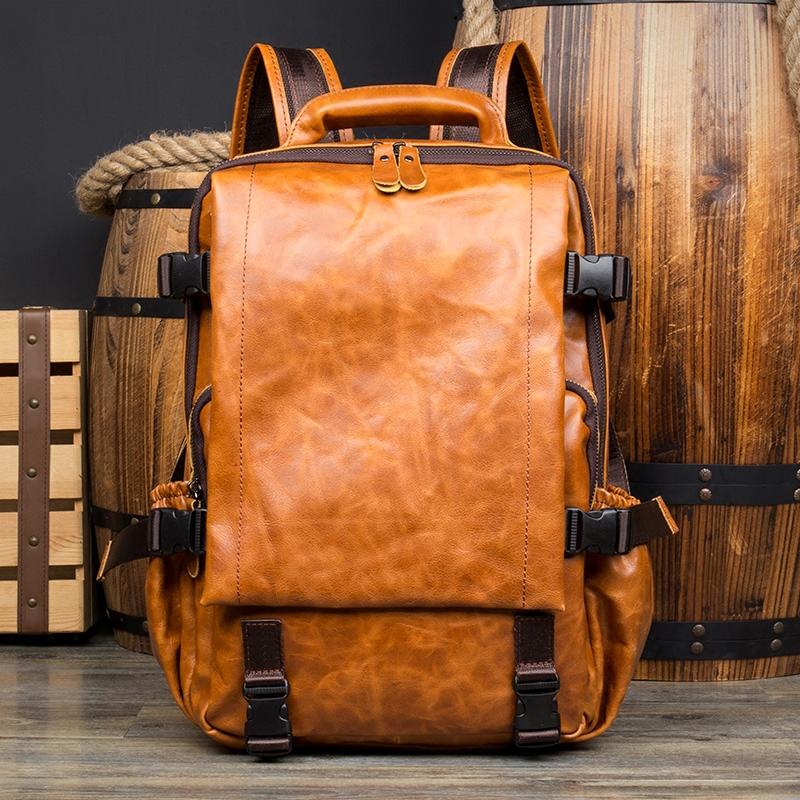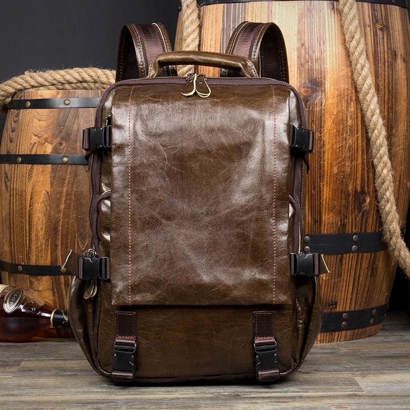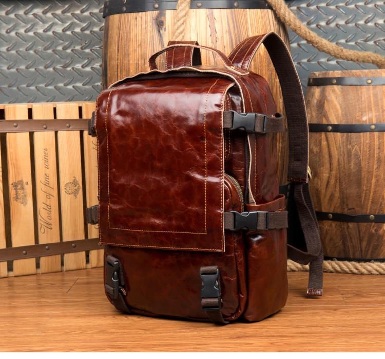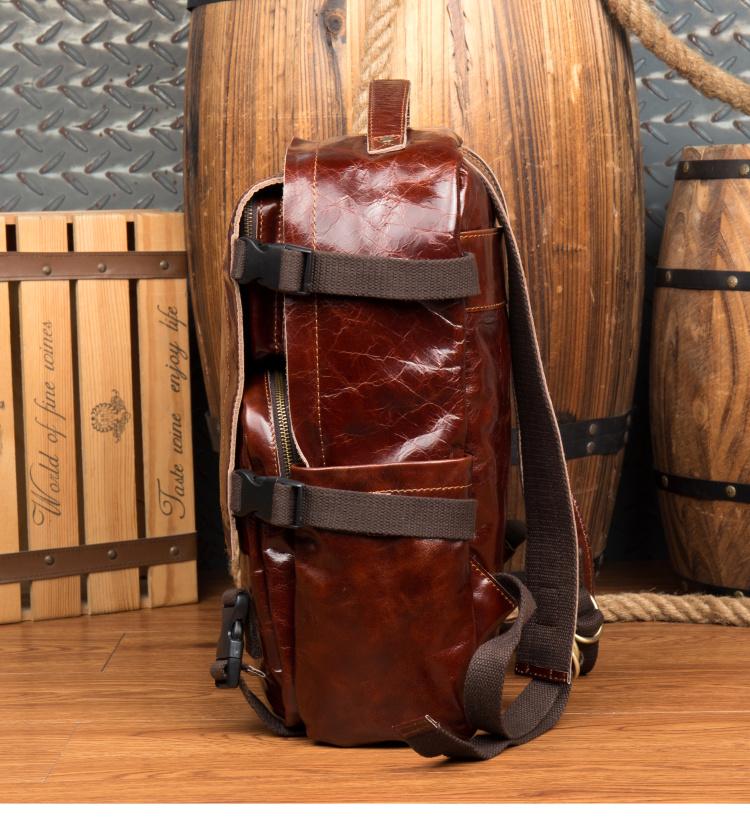 Design: Brown Leather Mens 15 inches Cool Sling Bag Red Brown Crossbody Bag Chest Bag for men