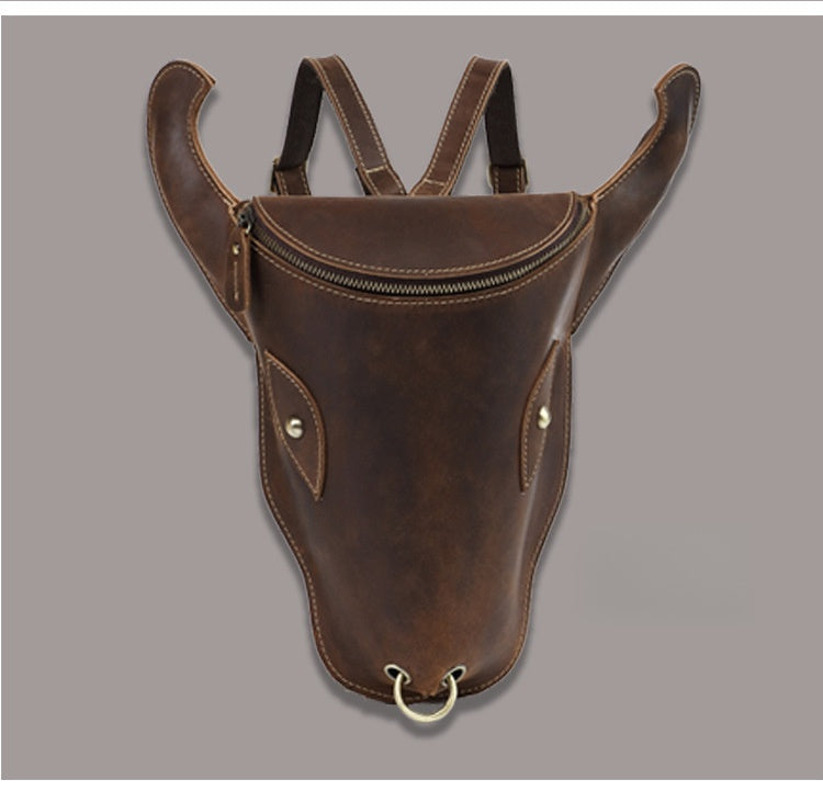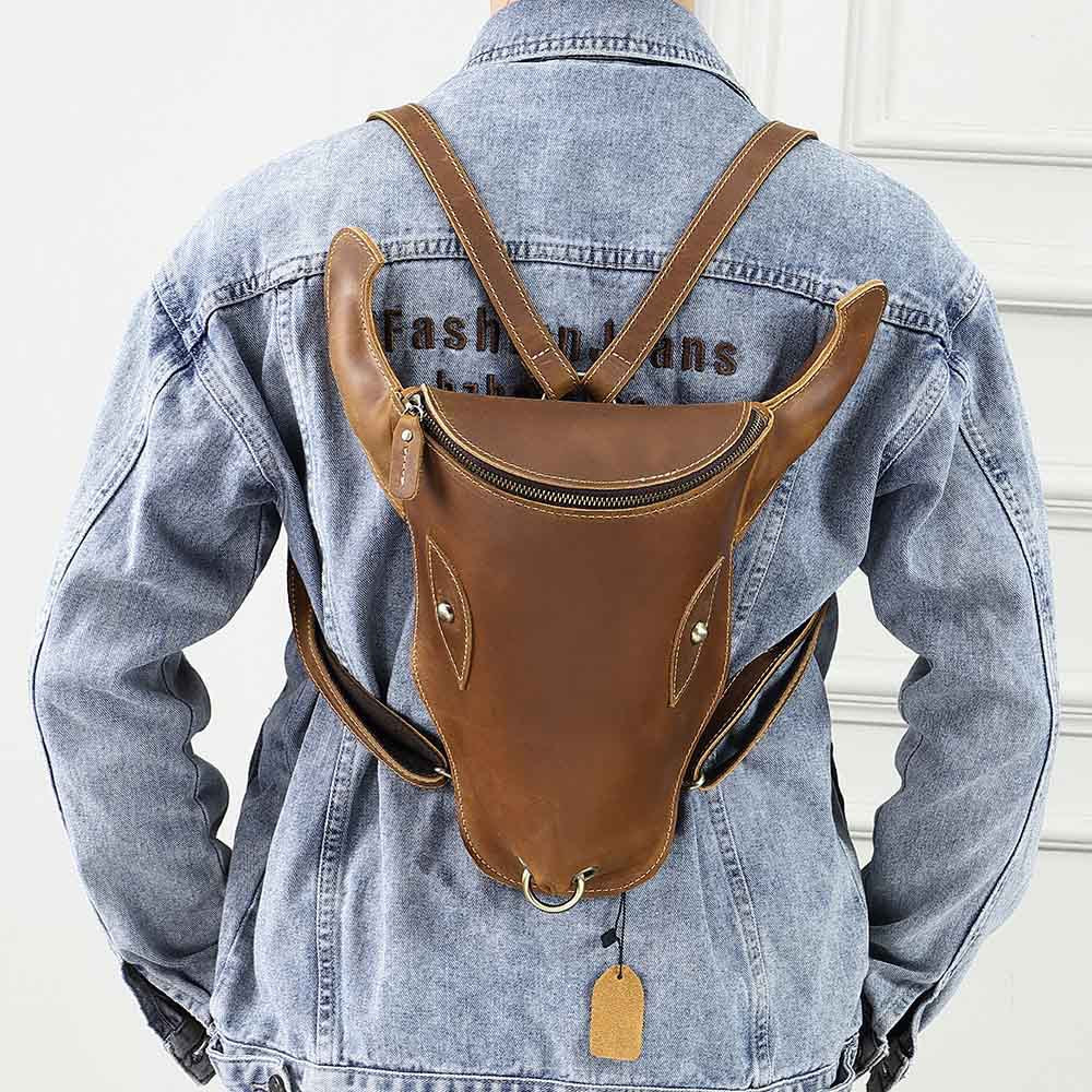 Style: Brown Ox Bull Head Leather Backpack Mens Cool Leather Backpack