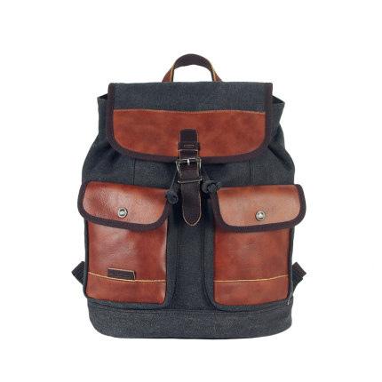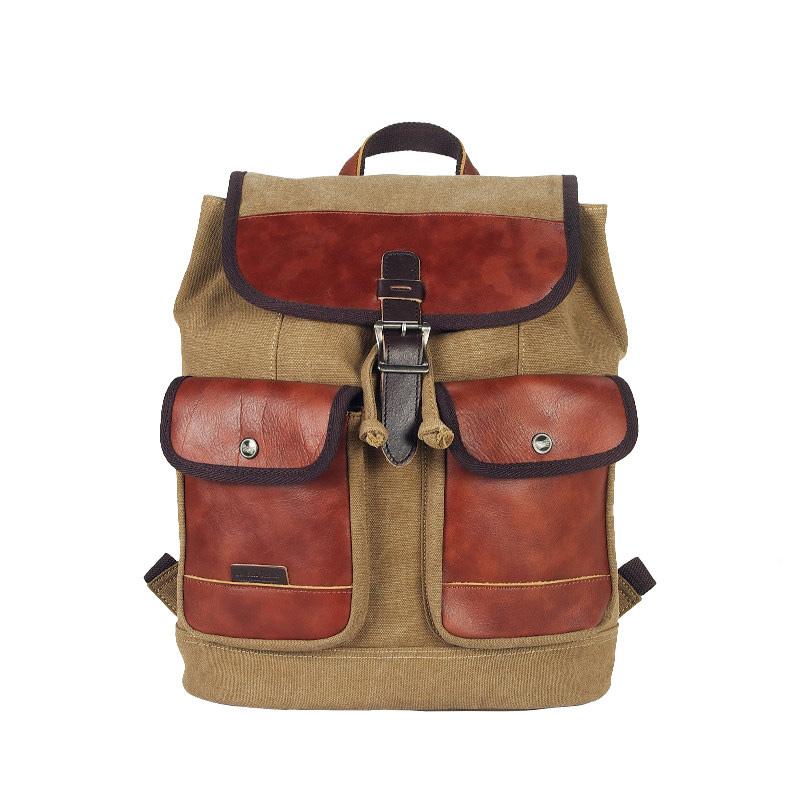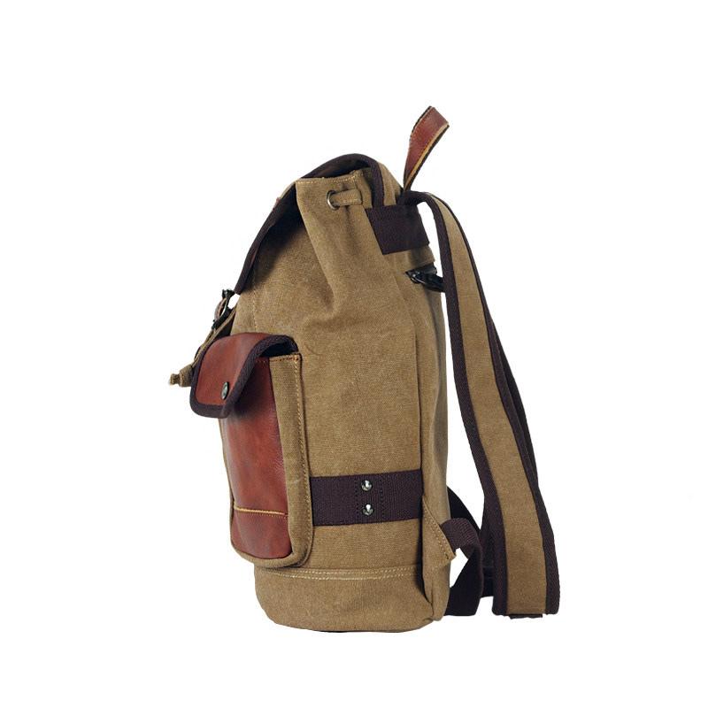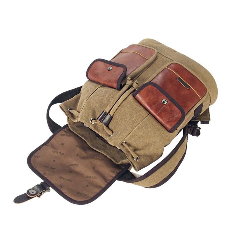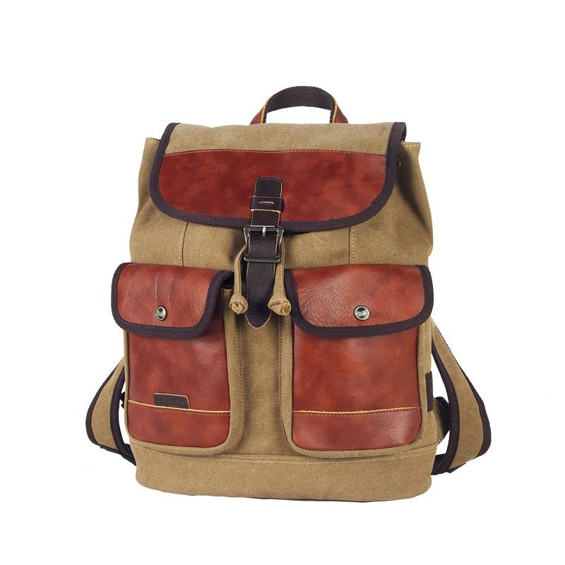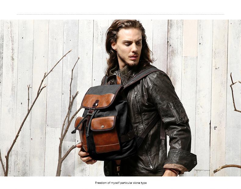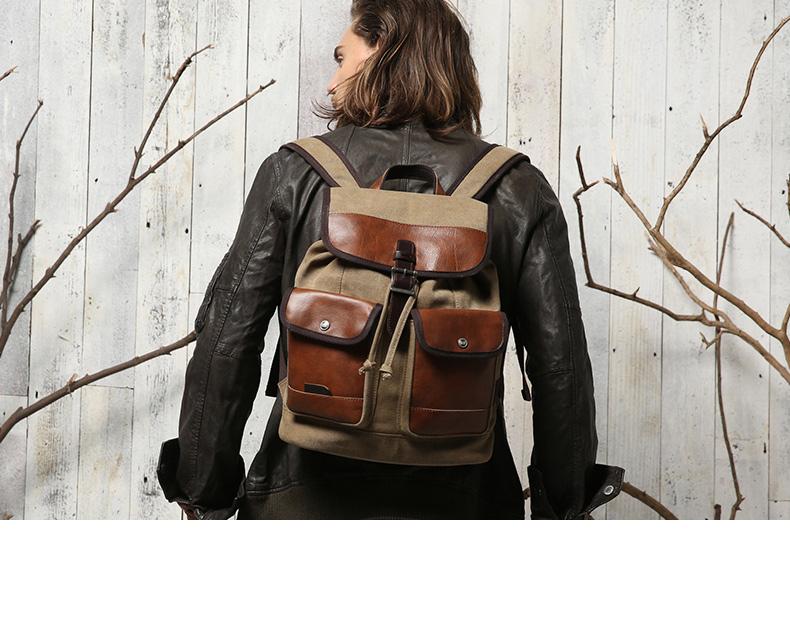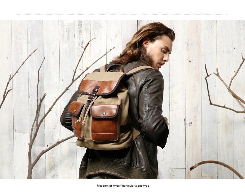 Style: Fashion Canvas Leather Mens Khaki Backpack School Backpack Black Canvas Travel Backpack For Men