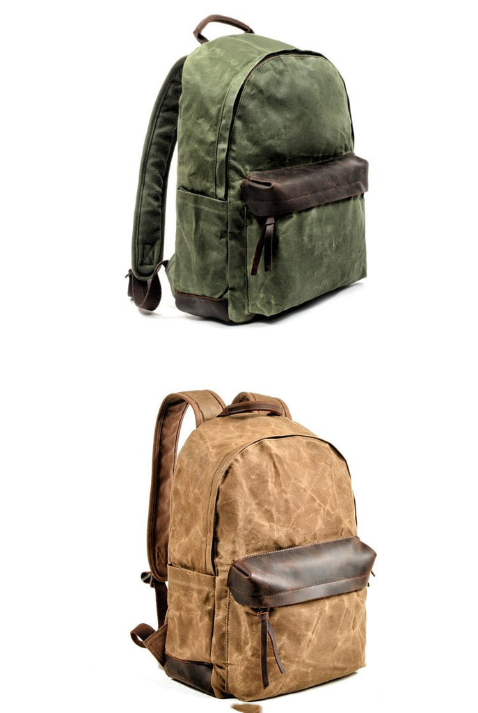 Waxed Canvas Womens Mens Backpack 14'' Green College White Backpack Travel Backpack For Men