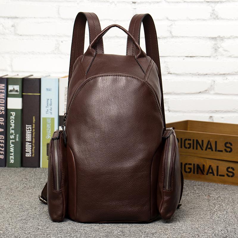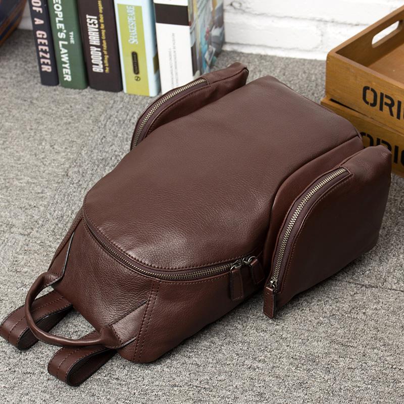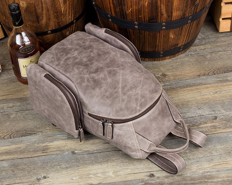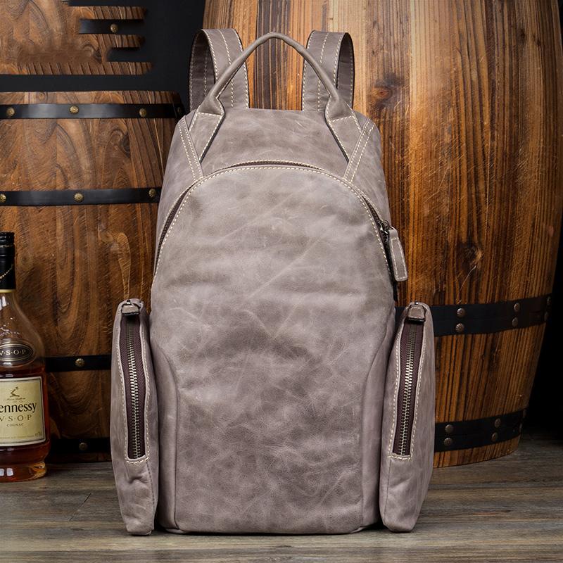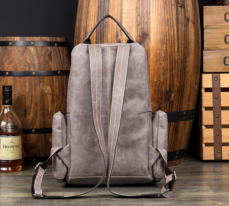 Design: Gray Fashion Mens Leather 12-inch Computer Backpacks Cool Travel Backpacks School Backpack for men
