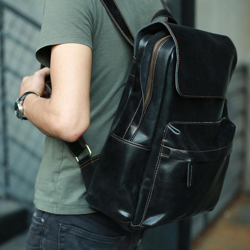 Style: Handmade Leather Mens Backpacks Cool Travel Backpacks Laptop Backpack for men