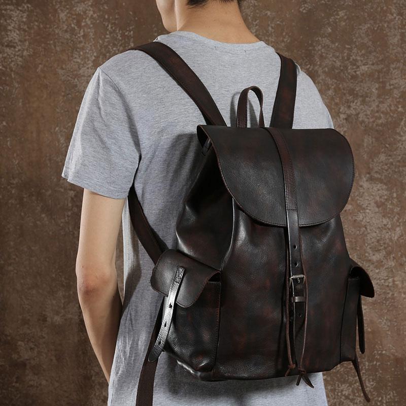 Style: Handmade Leather Mens Cool Backpack Sling Bag Large Travel Bag Hiking Bag for Men