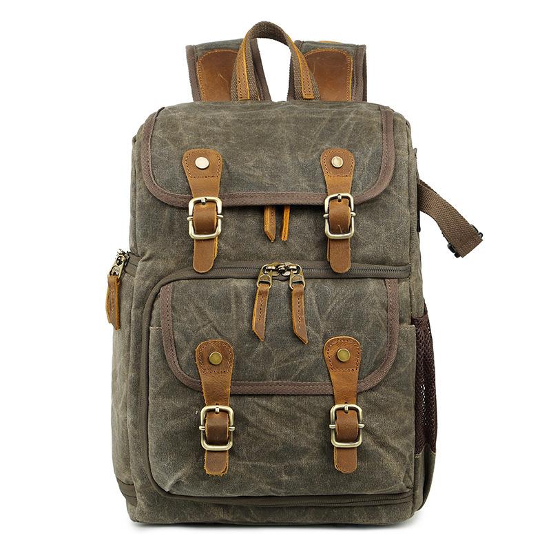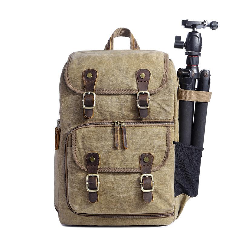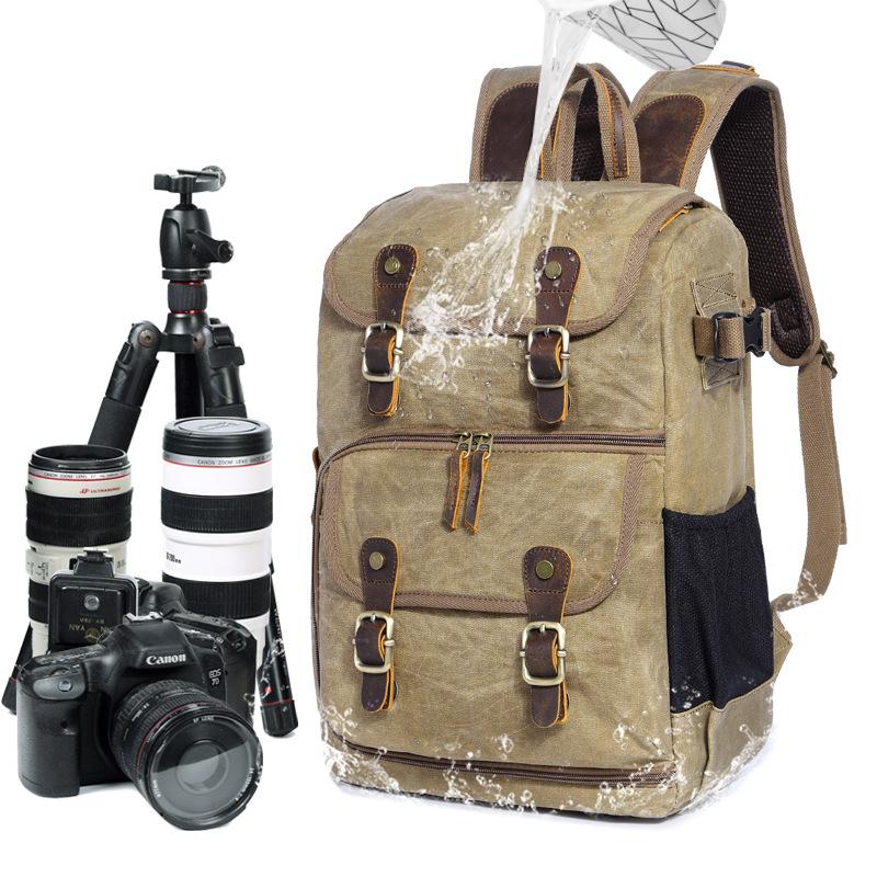 Design: Khaki CANVAS WATERPROOF MENS 15'' CANON CAMERA BACKPACK LARGE NIKON CAMERA BAG DSLR CAMERA BAG FOR MEN
