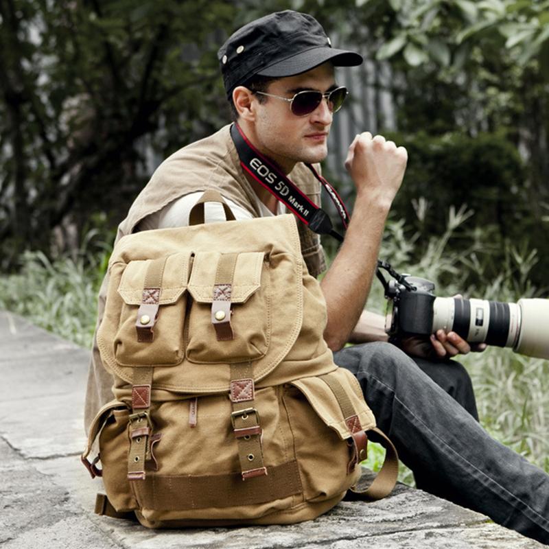 Style: Khaki CANVAS WATERPROOF MENS 16'' Multi-function CAMERA BACKPACK Army Green LARGE NIKON CAMERA BAG DSLR CAMERA BAG FOR MEN