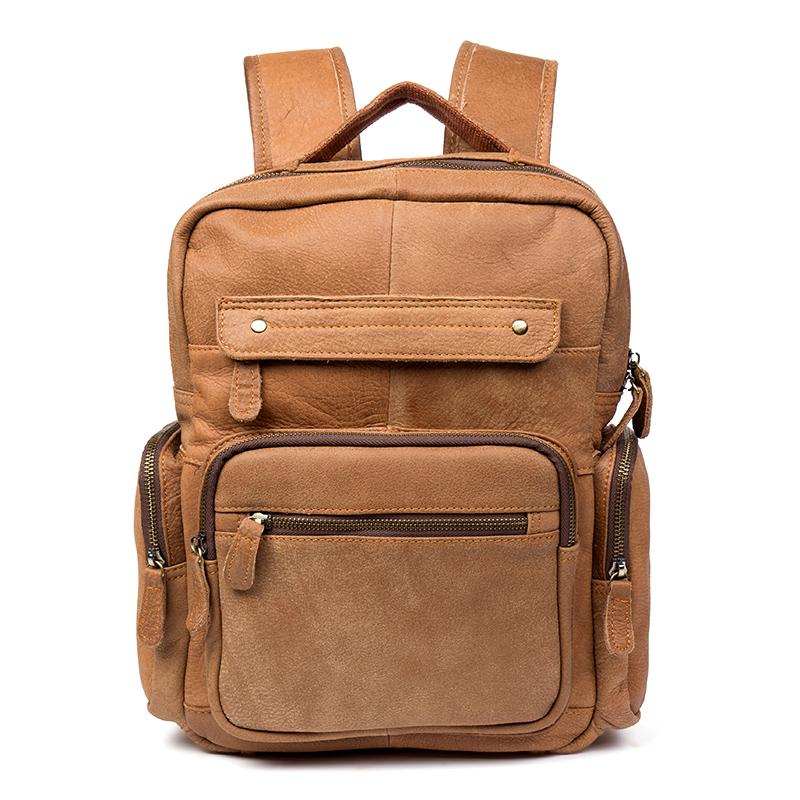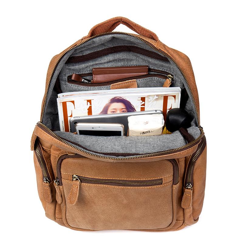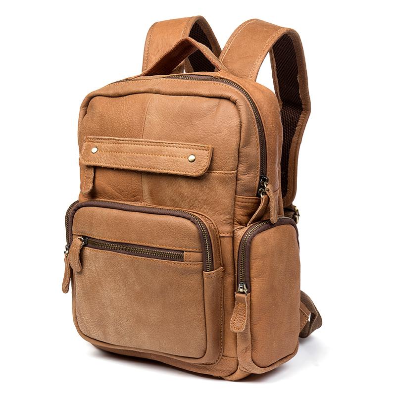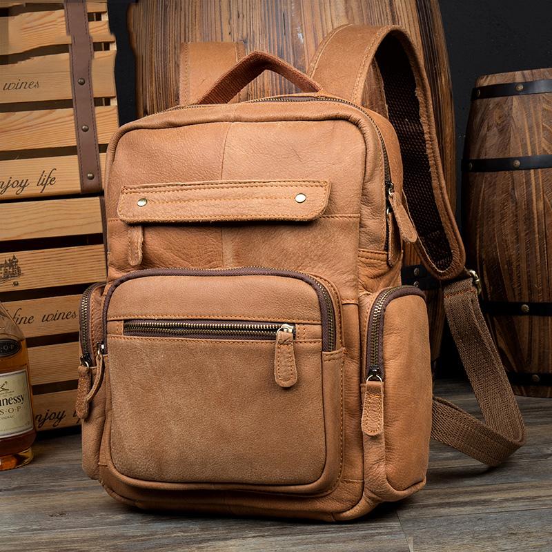 Casual Khaki Leather Mens 13 inches School Backpacks Tan Computer Backpack for Men