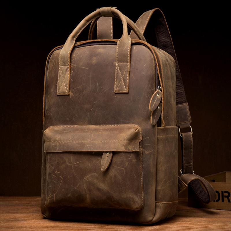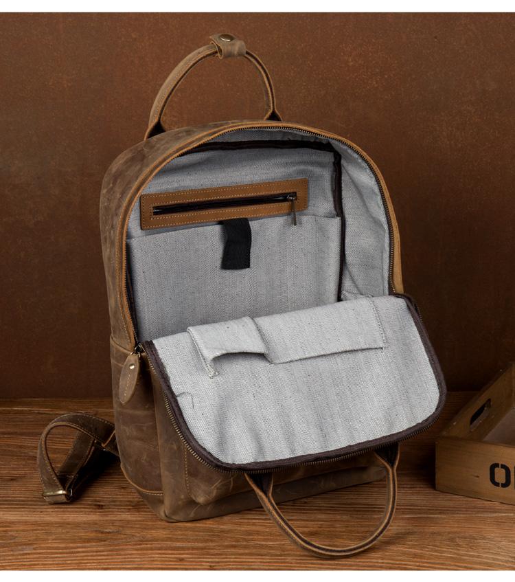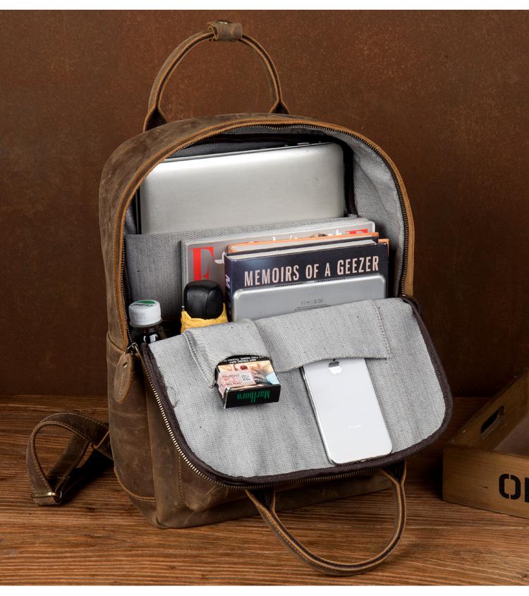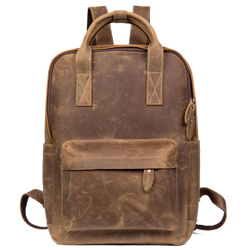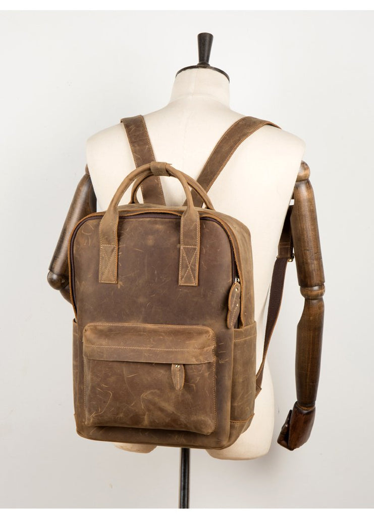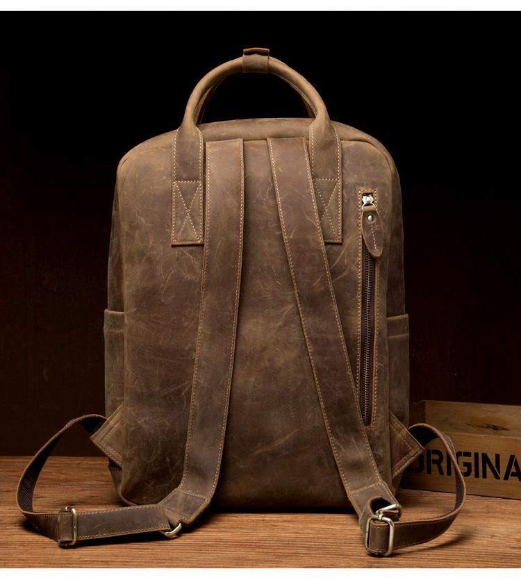Design: Light Brown Casual Leather Mens 15-inch Travel Backpack Computer Backpack for Men