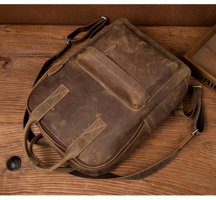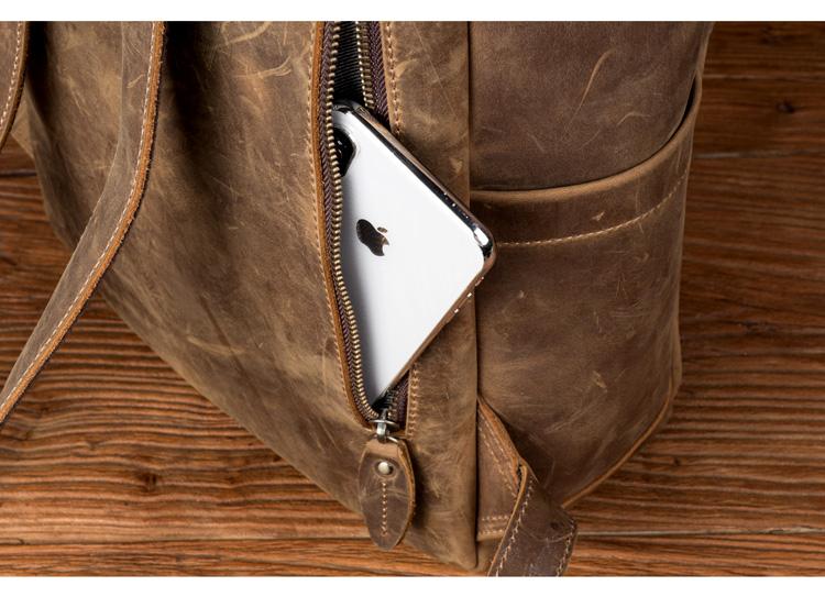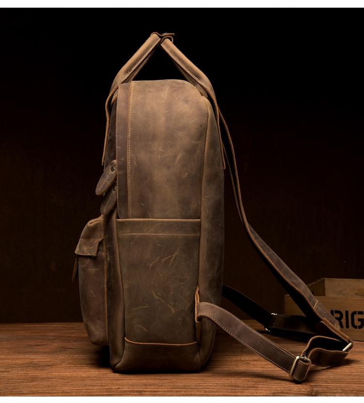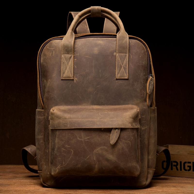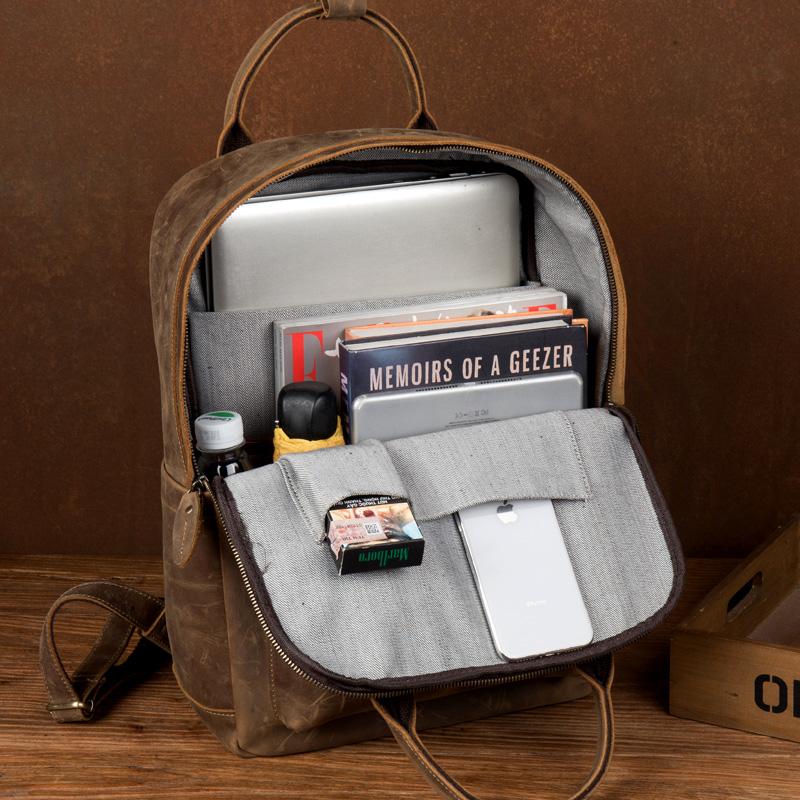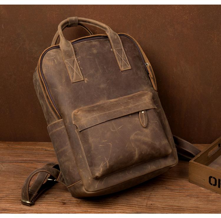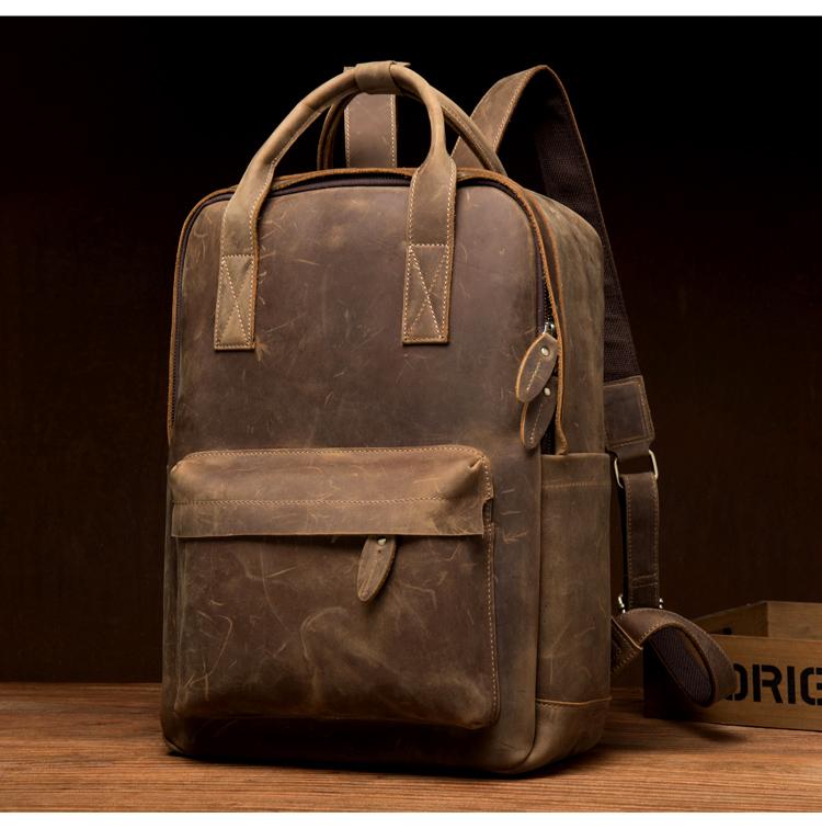 Design: Light Brown Casual Leather Mens 15-inch Travel Backpack Computer Backpack for Men