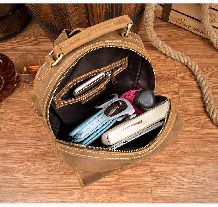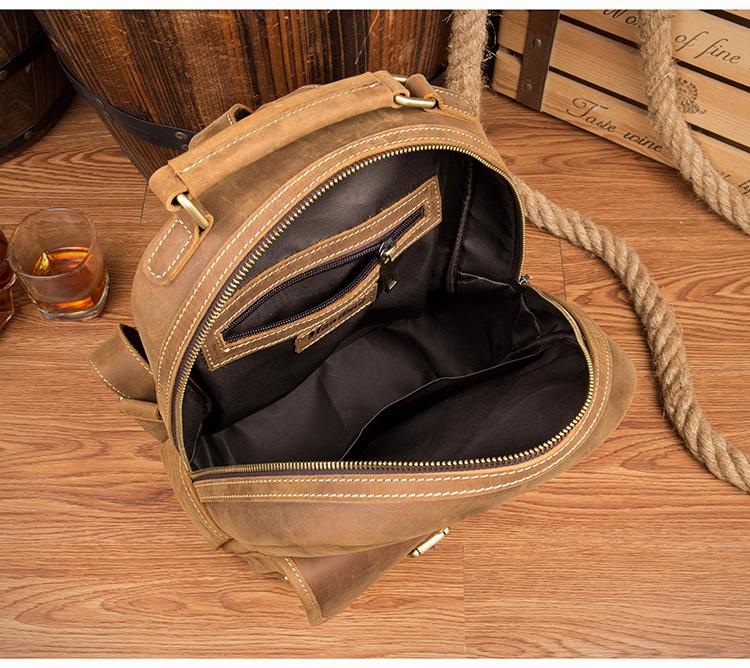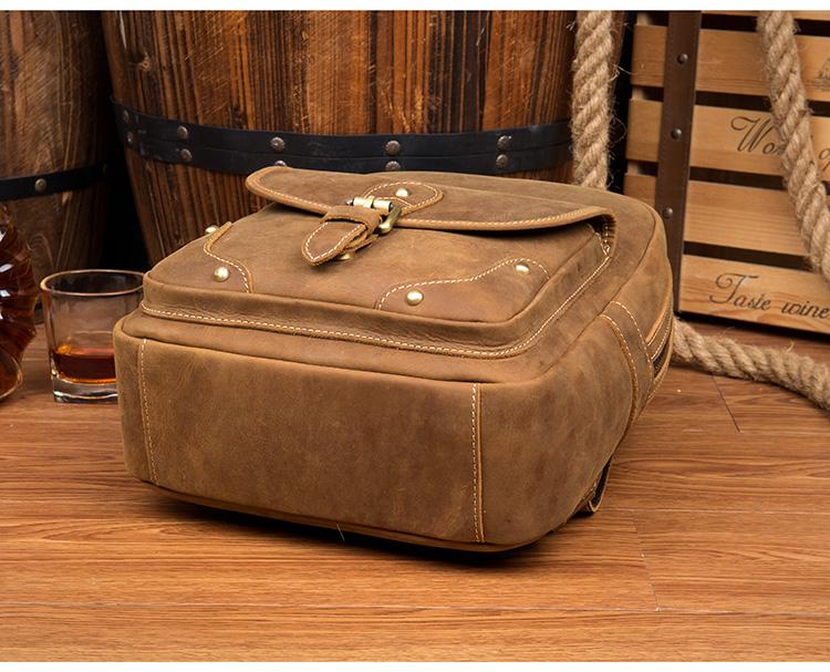 Design: Light Brown Fashion Mens Leather 12-inch Computer Backpacks Cool Travel Backpacks School Backpack for men