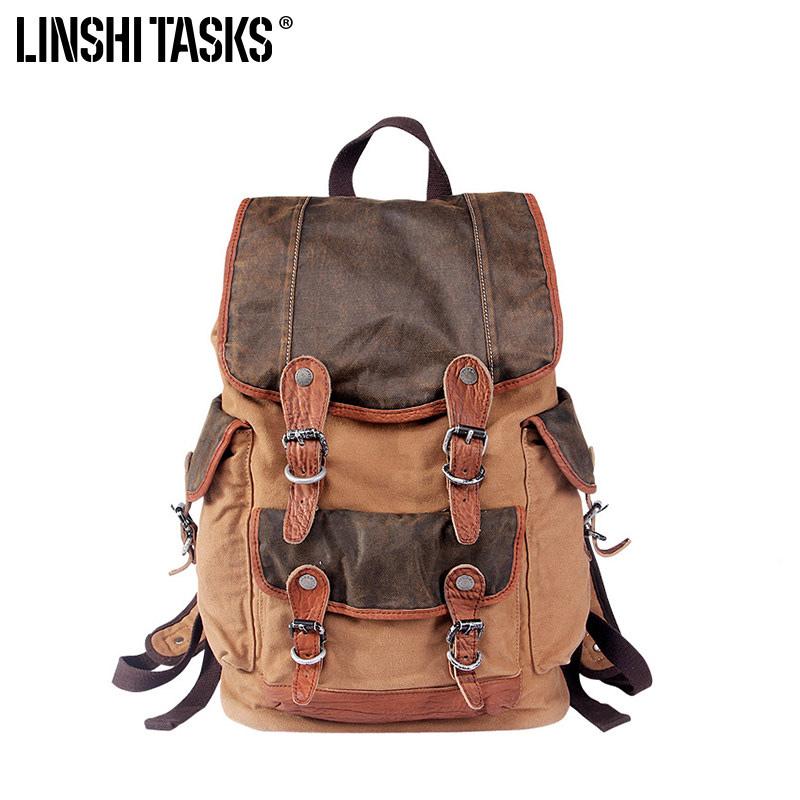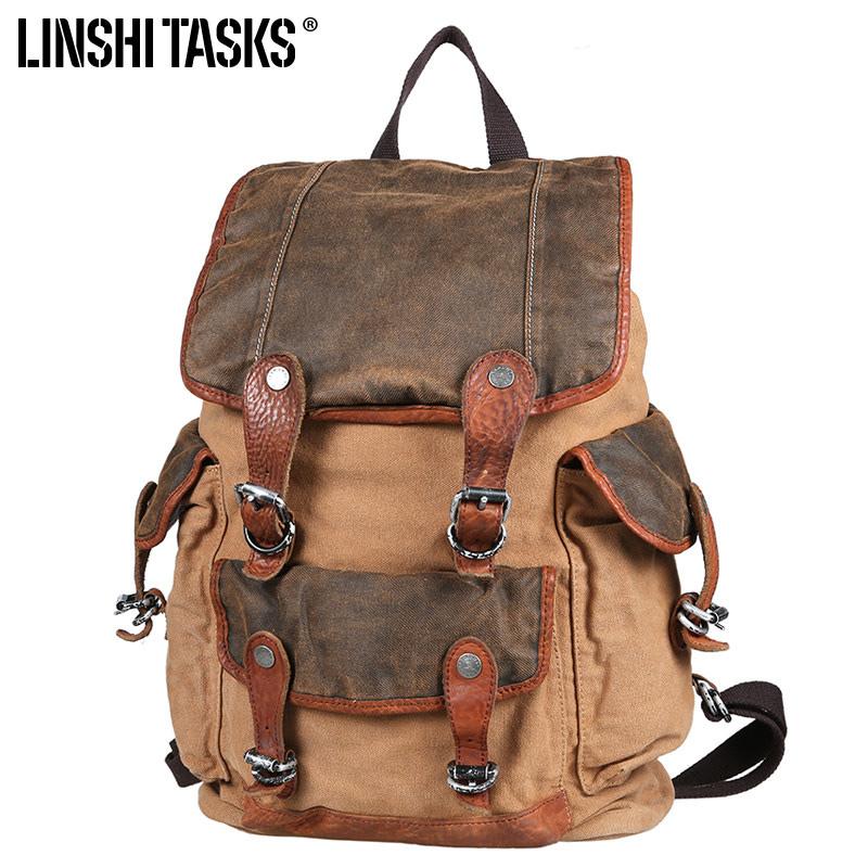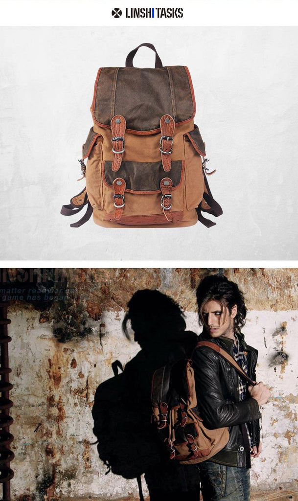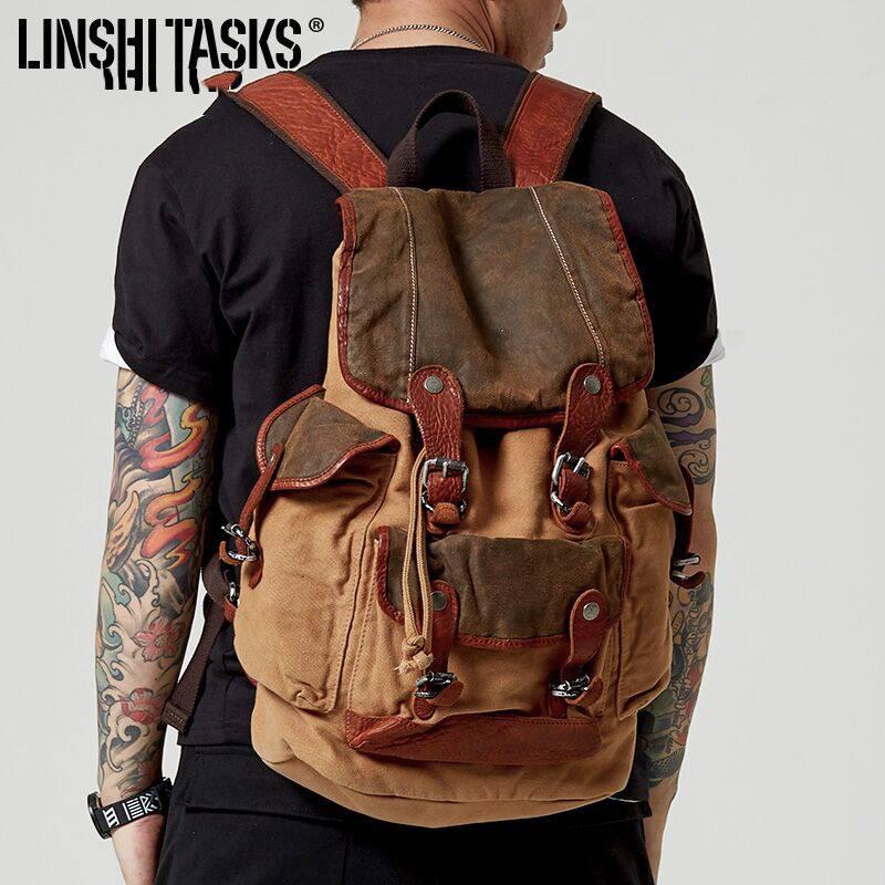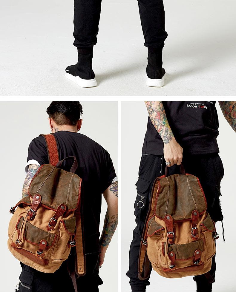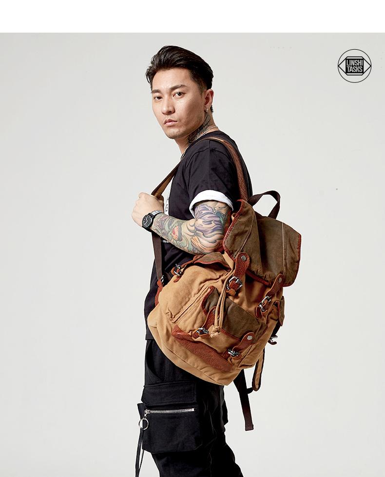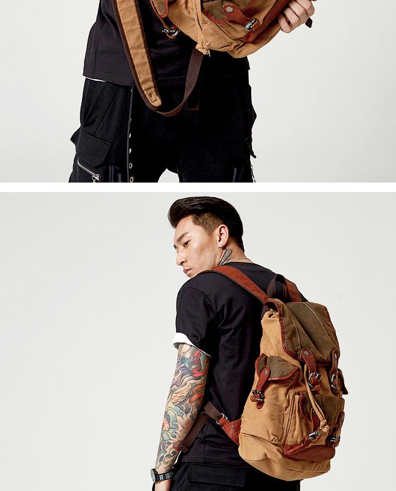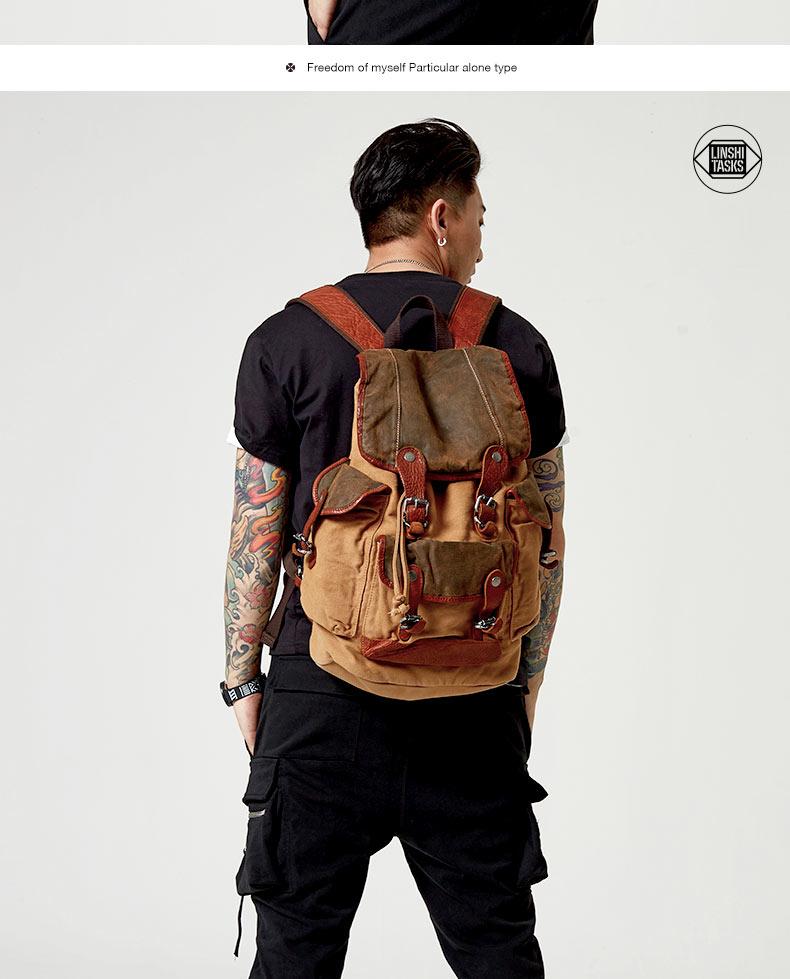 Style: Retro Canvas Leather Mens Large Brown Backpack School Backpack Canvas Travel Backpack For Men