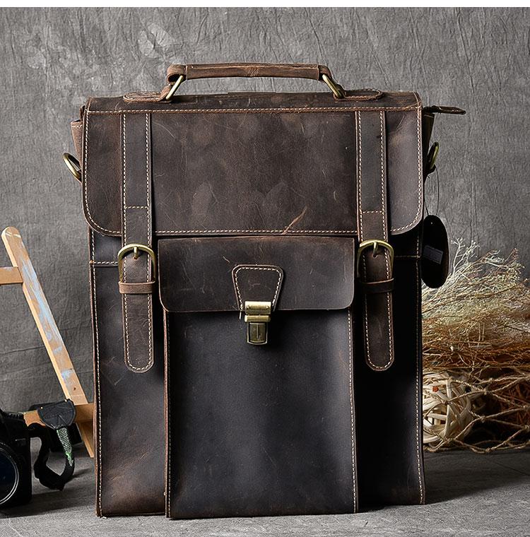 Design: Waxed Canvas Leather Mens 14" Brown Computer Backpack Dark Brown Travel Backpack College Backpack for Men