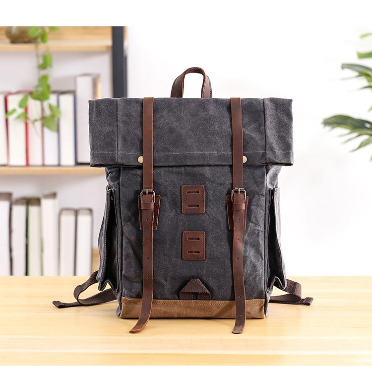 Style: Waxed Canvas Leather Mens 16‘’ Army Green Backpack Khaki Travel Backpack Dark Gray Hiking Backpack for Men