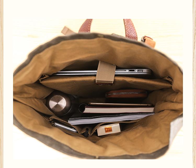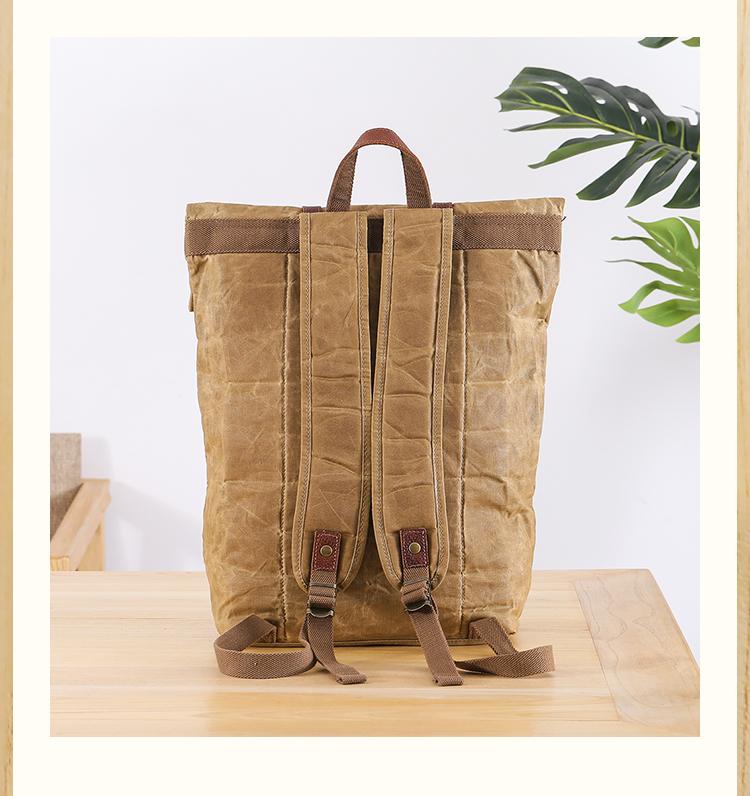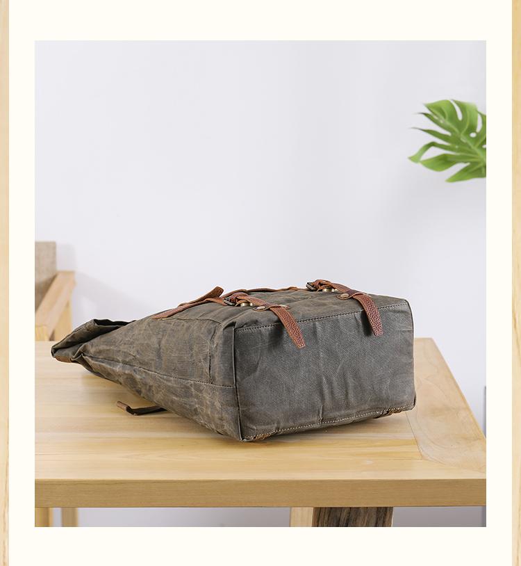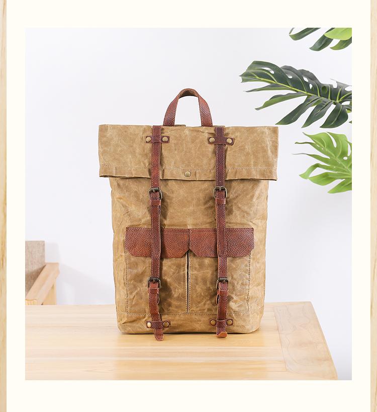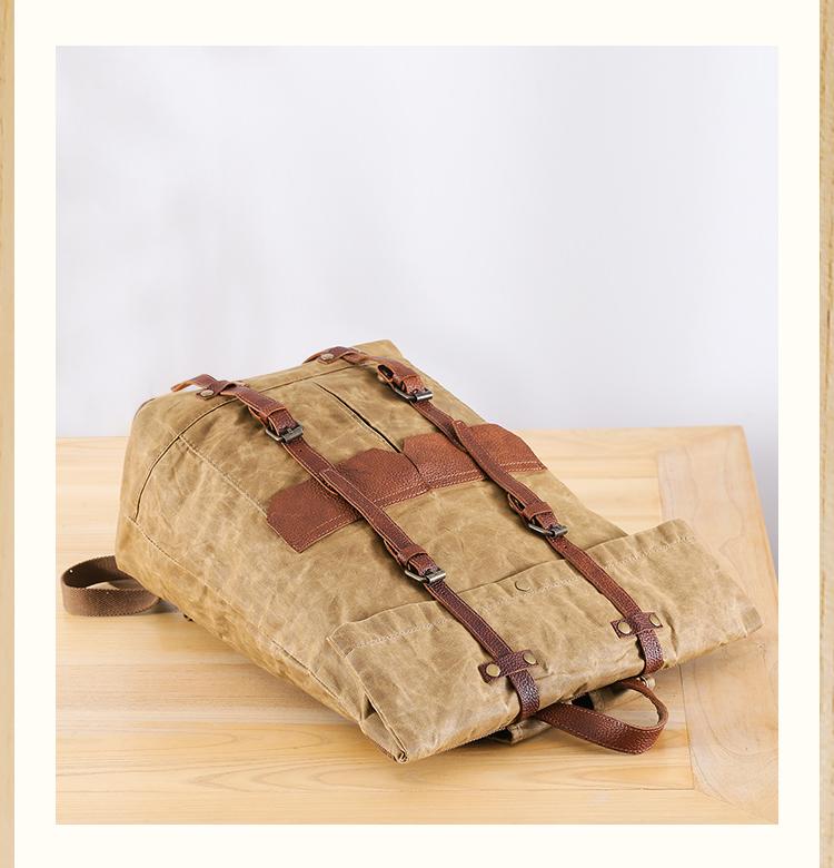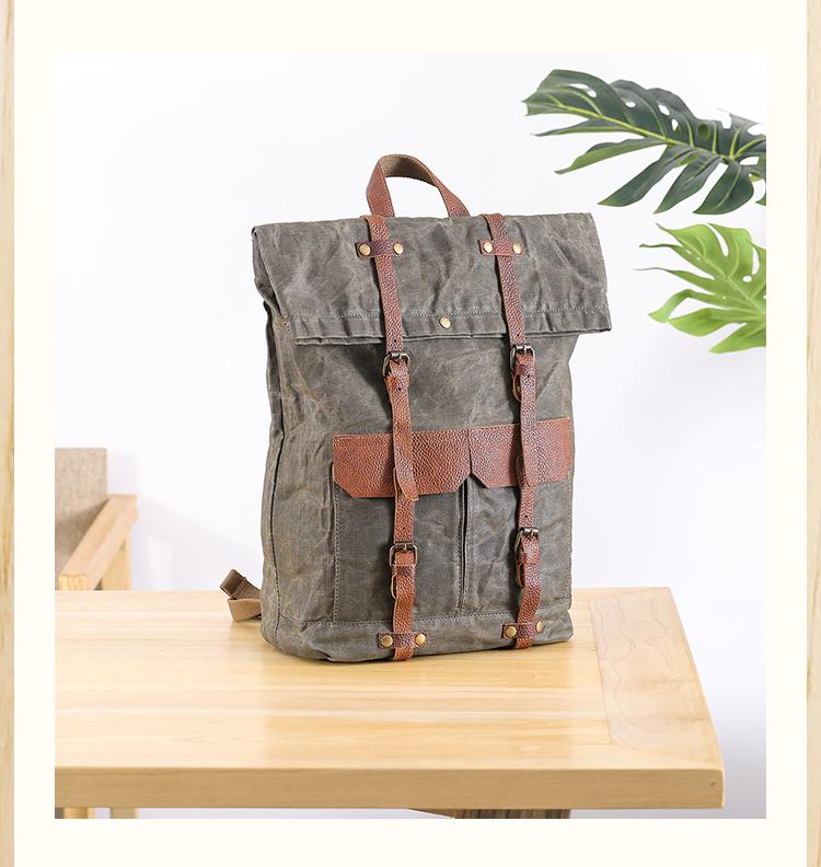 Design: Waxed Canvas Leather Mens Army Green Waterproof Backpack Khaki Travel Backpack Hiking Backpack for Men
