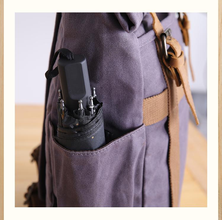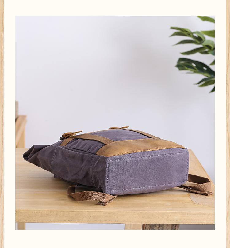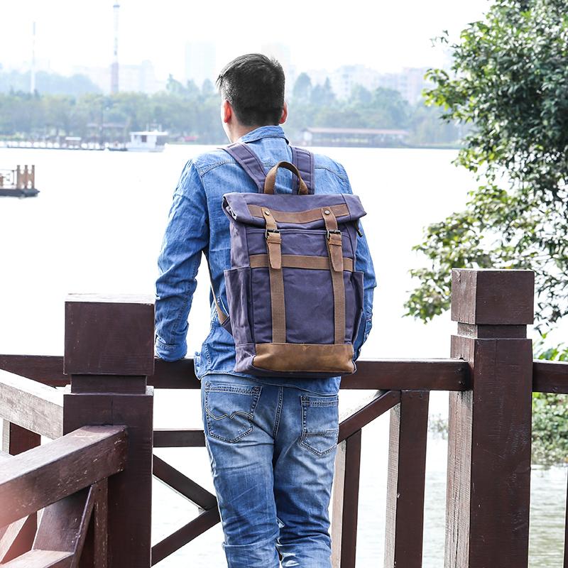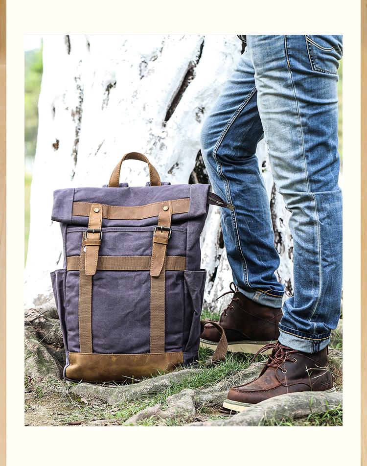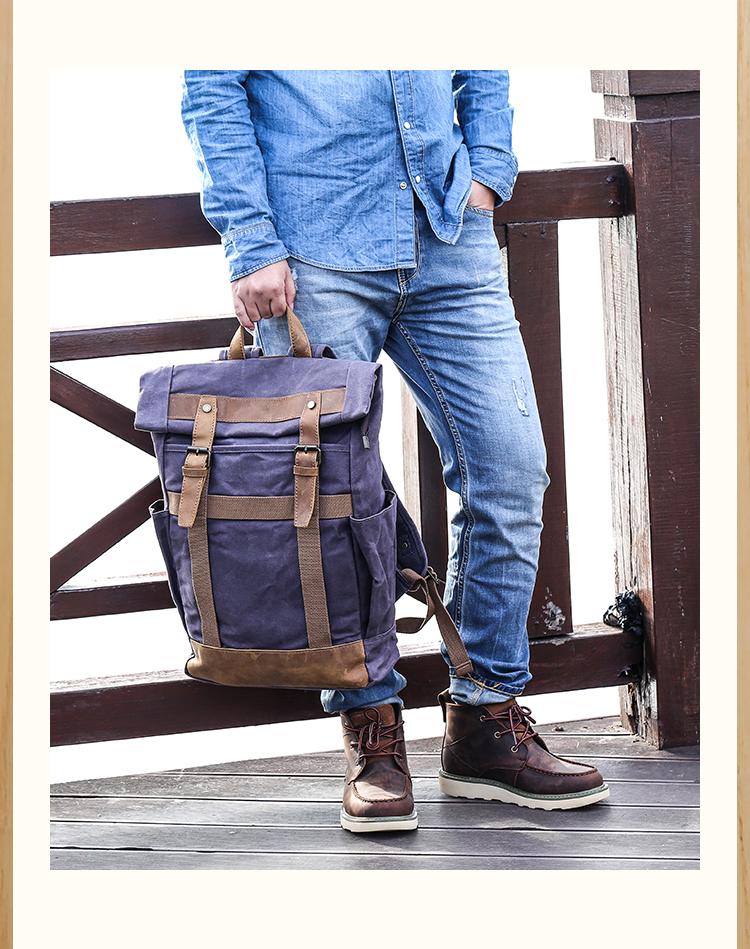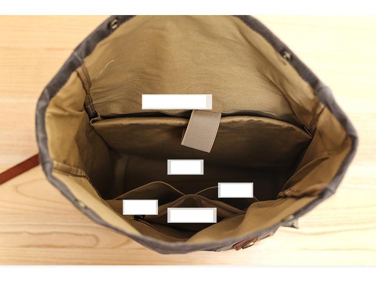 Design: Waxed Canvas Leather Mens Dark Gray College Student Backpack Travel Backpack Hiking Backpack for Men