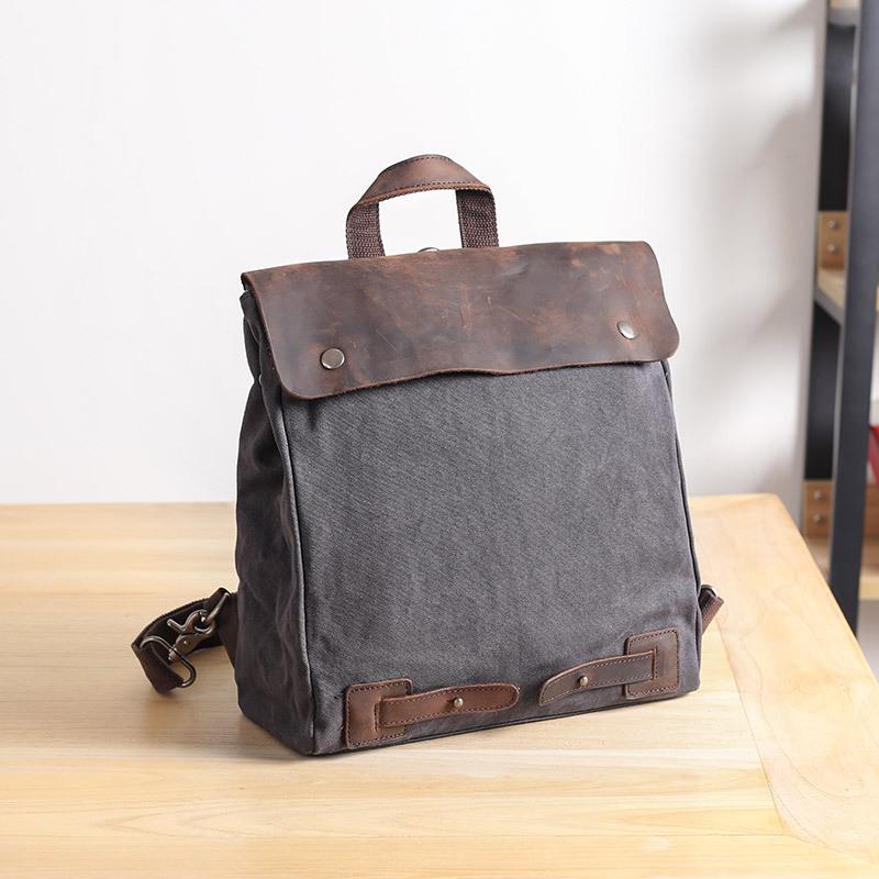 Design: Waxed Canvas Leather Mens Small Shoulder Bag Travel Backpack College Backpack for Men