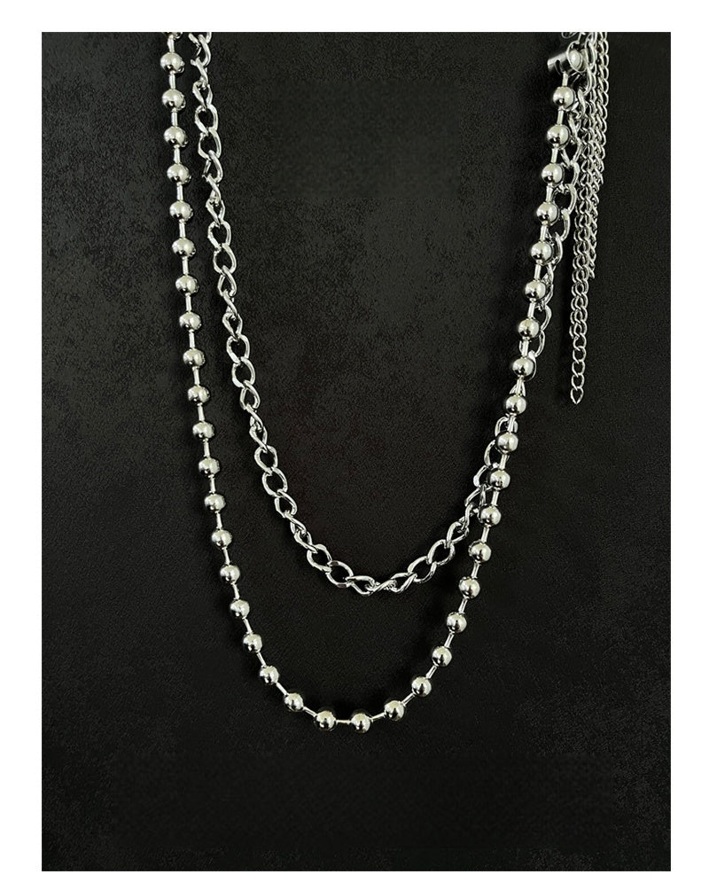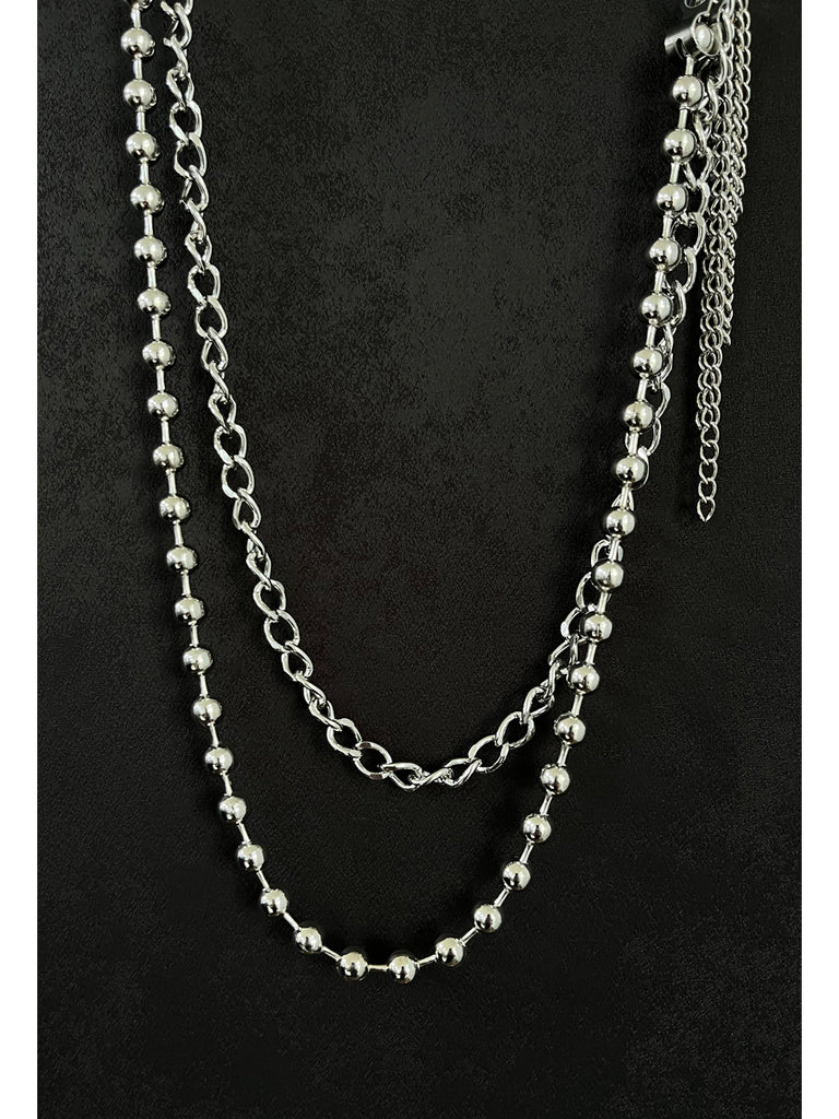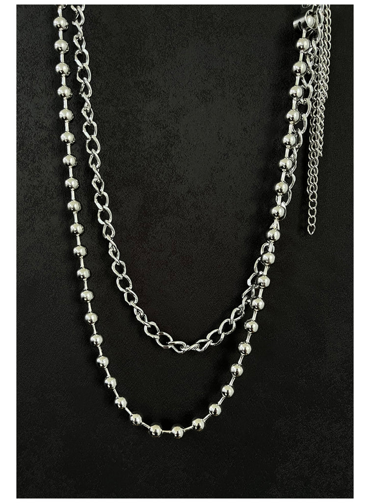 Crafted for fashion-forward individuals, this Double Wallet Chain balances the smooth, rounded profiles of stainless steel beads with the sleek, linear structure of alloy chain links. The addition of the short-chain cluster adds an element of controlled rebellion—a subtle fringe that catches the eye without overwhelming the design. Whether you're building a streetwear look, elevating a casual outfit, or adding an edge to tailored separates, this piece delivers a polished yet bold finish.