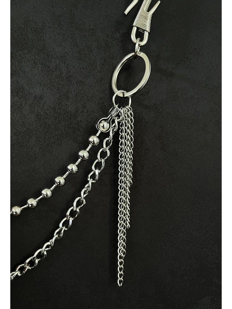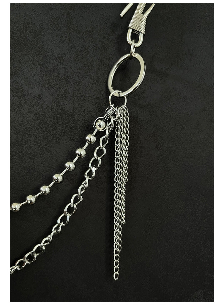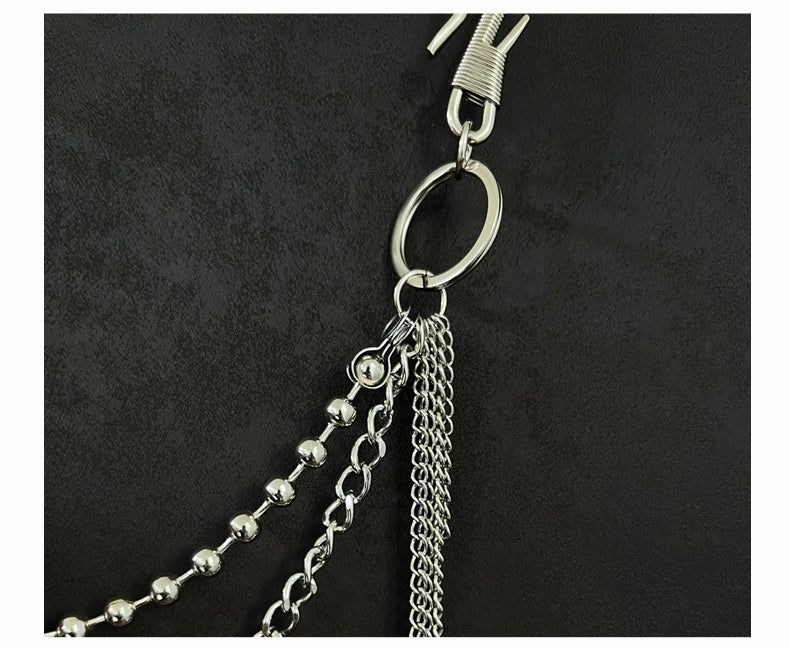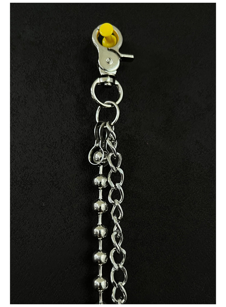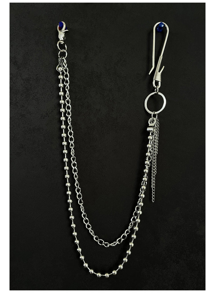 Introducing the Beaded Wallet Chain—a masterful blend of industrial edge and layered sophistication designed for the modern style innovator. This standout Double Wallet Chain features two distinct chains: a 56cm outer strand of polished stainless steel beads and a 50cm inner strand of classic alloy links. The design is elevated with a unique cluster of four delicate short chains near the clasp, creating a dynamic, multi-dimensional accessory that plays with texture, light, and movement. This versatile Ball Wallet Chain is a wearable statement for those who appreciate refined contrast and architectural detail.