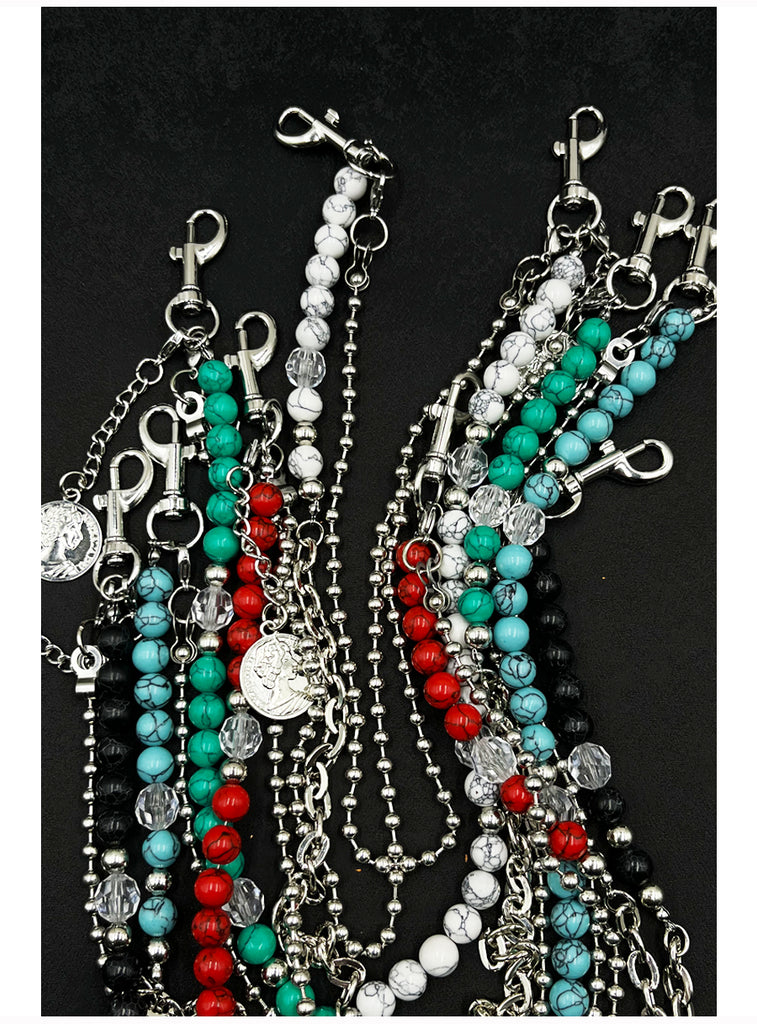 The Ball Wallet Chain is more than an accessory—it’s a wearable expression of creativity and contrast. The cerulean turquoise grounds the look with aquatic energy, the alloy adds structure, and the crystals bring light and movement. Together with the coin charm, this Beaded Wallet Chain tells a story of exploration, style, and individuality. Whether you wear it as a waist chain, a cross-body accent, or a layered necklace, it’s designed to inspire and impress.