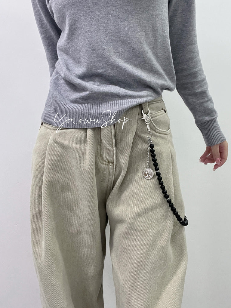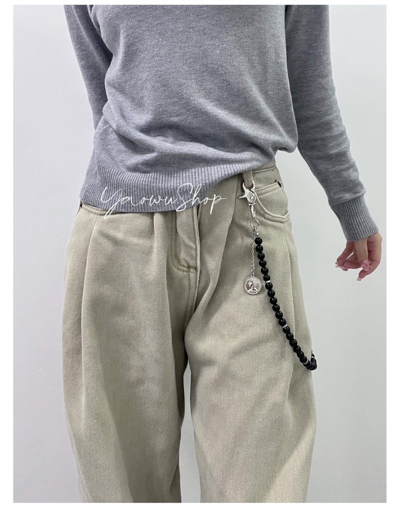 Style: Black Beaded Wallet Chain Obsidian Stone Wallet Chain Black Ball Wallet Chain