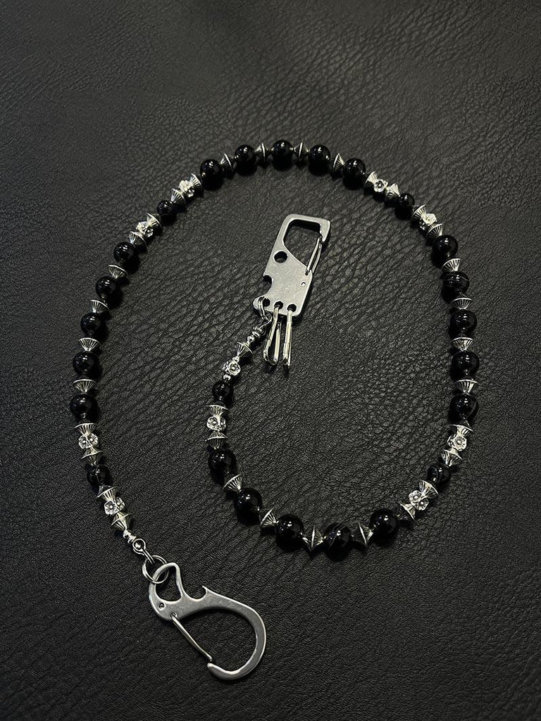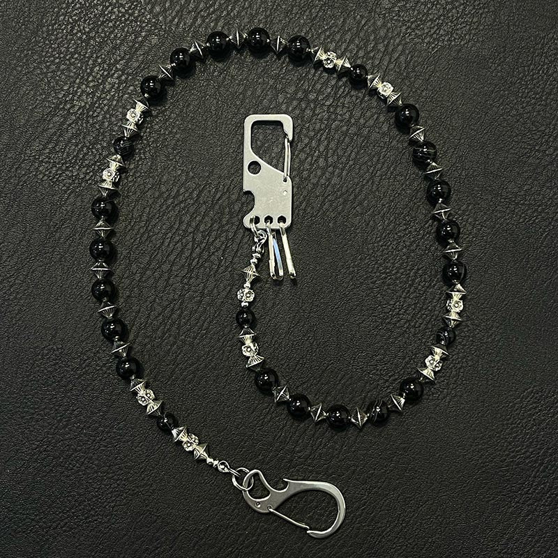 Experience the perfect fusion of dark elegance and urban functionality with this remarkable beaded Wallet Chain. Its unique composition and practical details make it more than just an accessory – it's a wearable expression of individuality that celebrates both mystery and purpose.